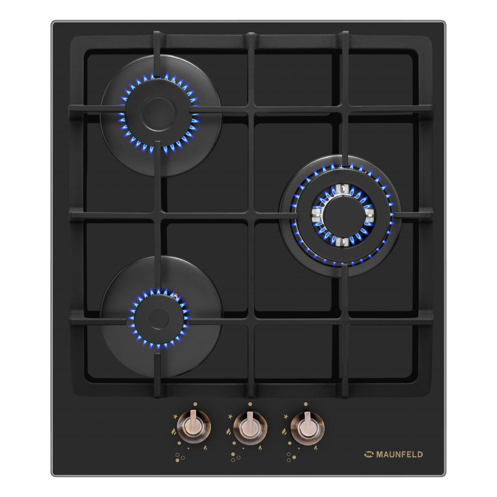 Варочная поверхность MAUNFELD EGHG.43.33CB.R/G, газовая, 3 конфорки, чёрная