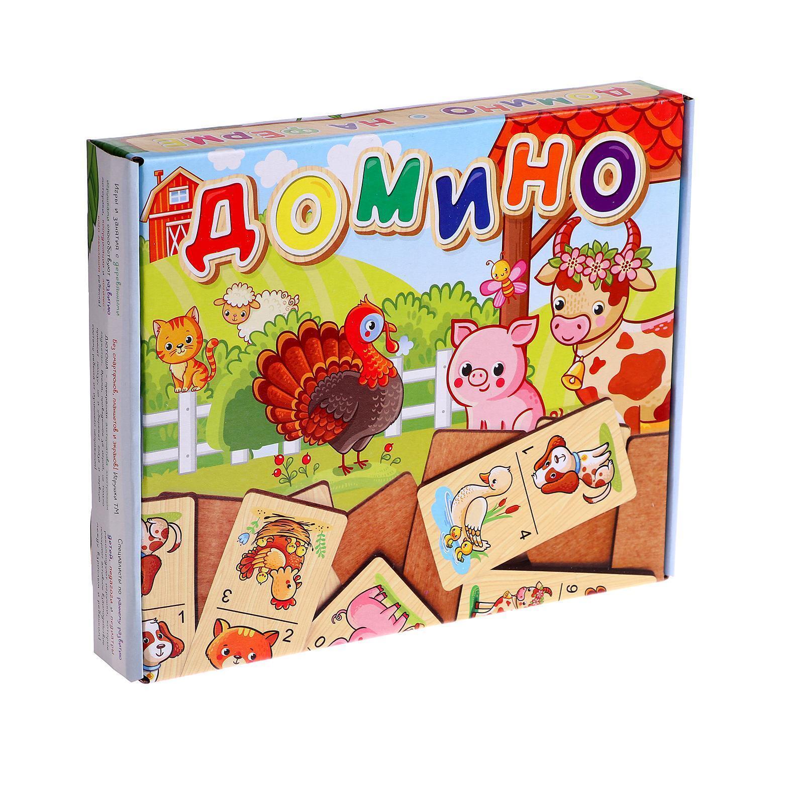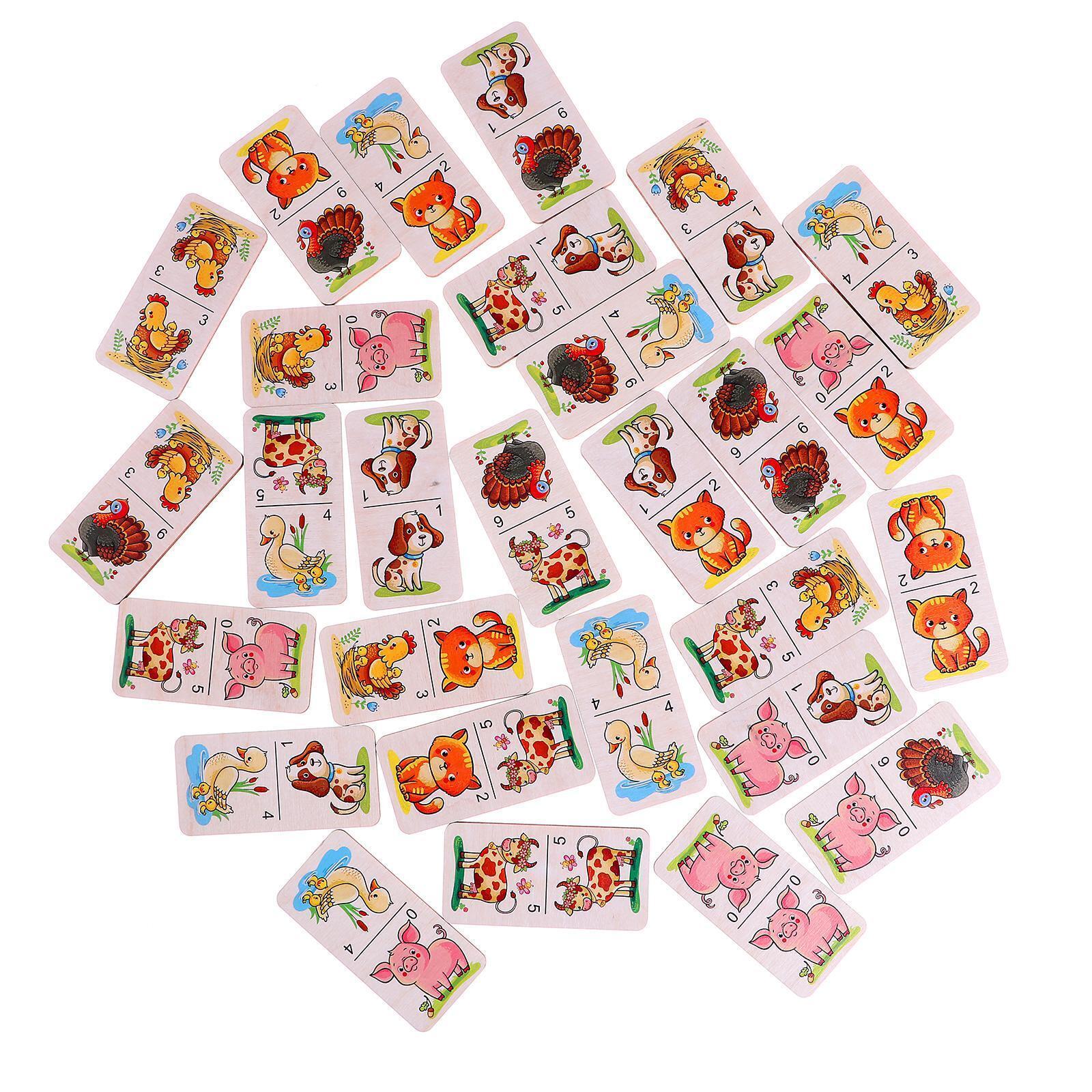 Детское деревянное домино с картинками для малышей производится в России из экологичного материала — отечественной берёзовой фанеры. Развивающая деревянная игра домино — полезная логическая настольная игра, где к изображению на одной фишке необходимо подобрать такое же на другой фишке.
