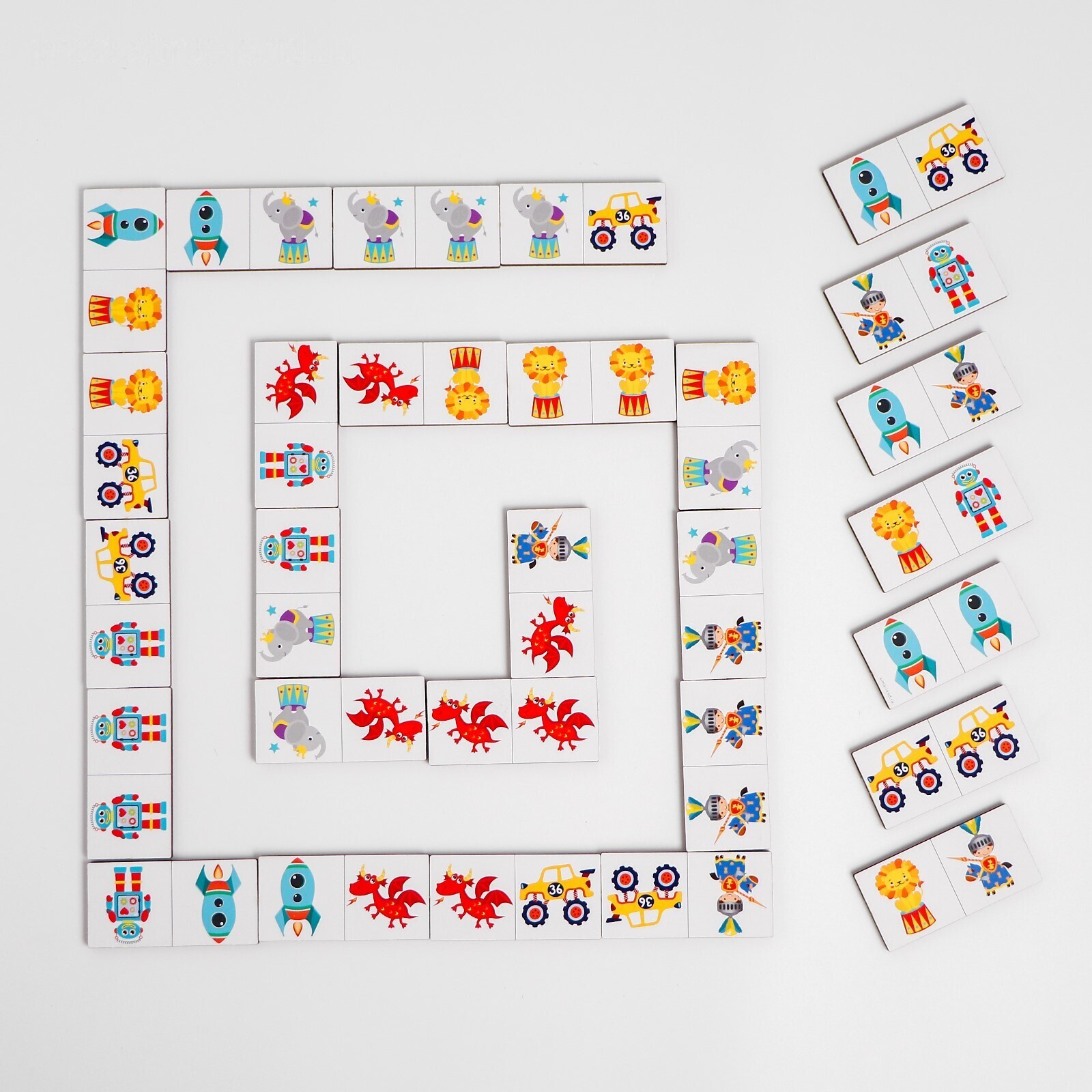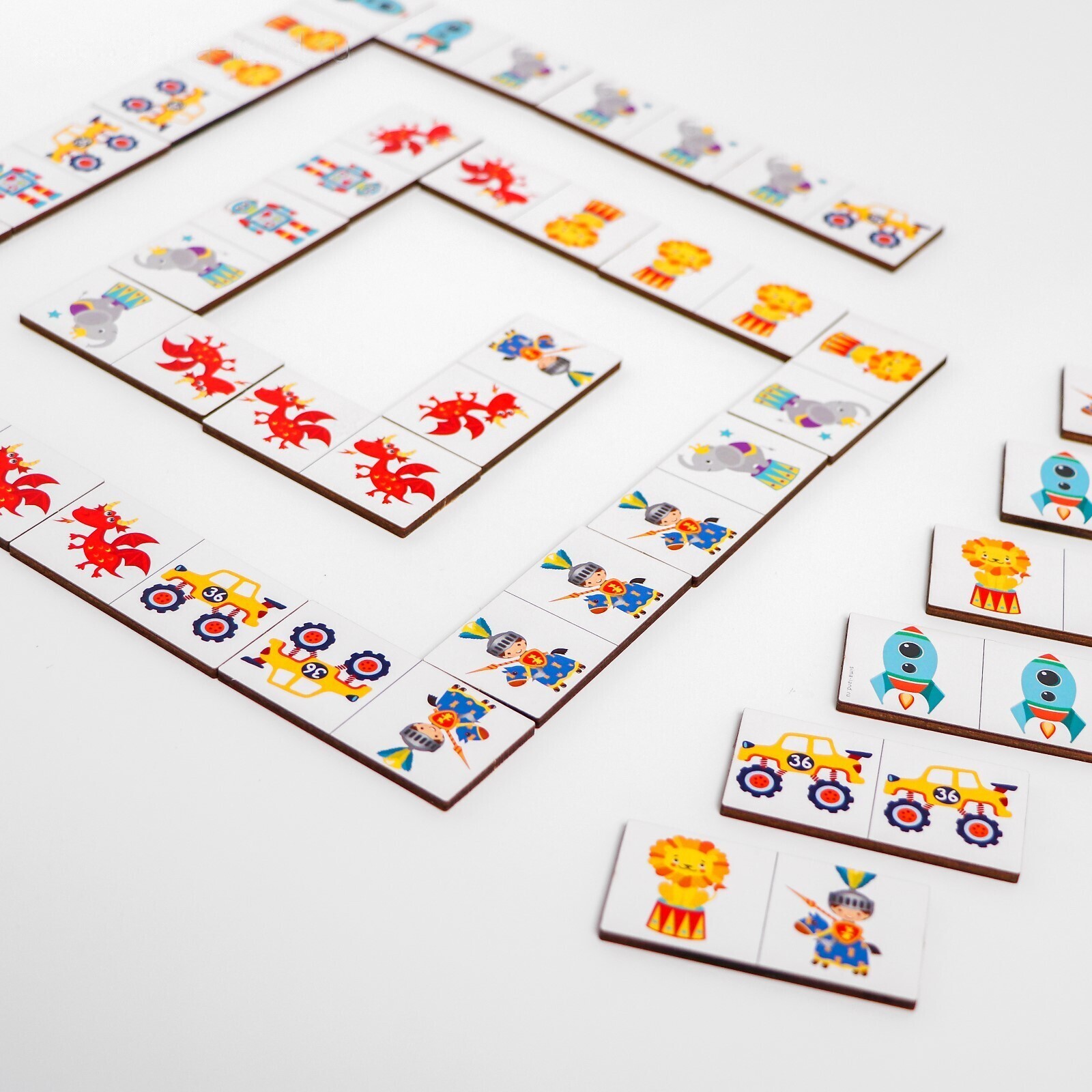 Специально для малышей мы разработали свой вариант этого интересного развлечения. Детское домино имеет яркие рисунки определённой тематики, которые помогут ребёнку обучаться в игровой форме.