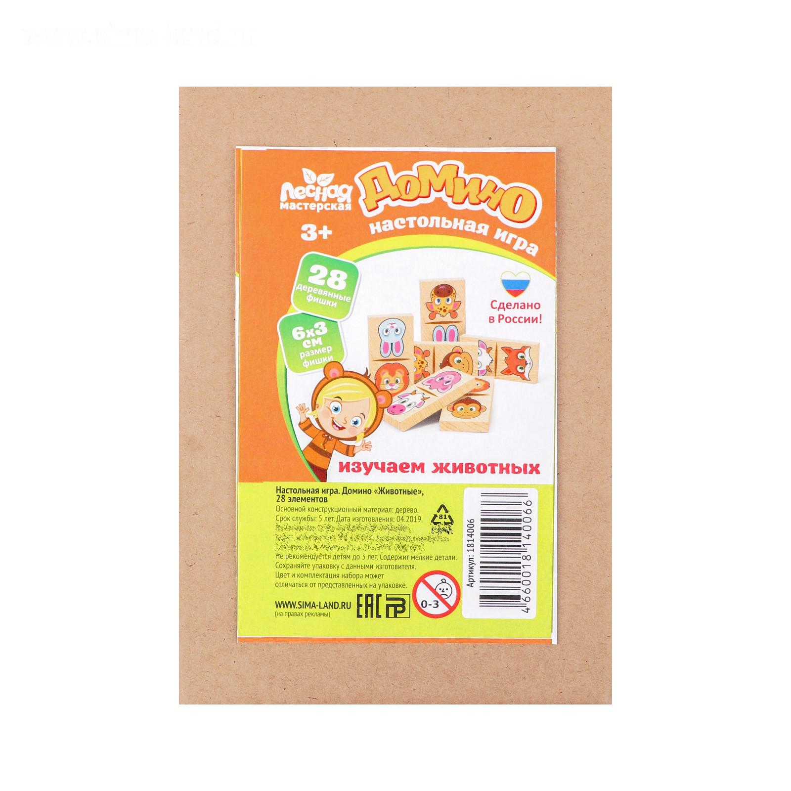Домино «Животные»,28 элементов, размер плашки: 3х6х0.4 см