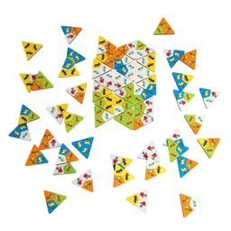 После того, как первая фишка окажется на поле, ход передаётся второму игроку. Задача - подобрать фишку, которая имеет с выложенной две совпадающие картинки, и выложить её на поле. Если нет подходящих фишек, возьмите дополнительную из перевёрнутых деталей. Так продолжается до тех пор, пока не найдётся подходящая.