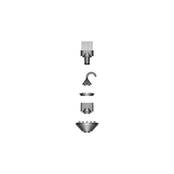 Фен Dyson Supersonic HD07 обеспечивает профессиональный и бережный уход за волосами. Он выполнен в компактном корпусе, оборудован мощным мотором и датчиком температуры. Данная модель оснащена 4 температурными режимами и 3 режимами скорости воздушного потока, а также режимом подачи холодного воздуха. Функция генерации ионов придает волосам здоровый блеск и защищает их от повреждений. В наборе поставляются 5 сменных насадок для сушки и укладки – концентратор, диффузор, насадка для безопасной и бережной сушки, гребень с широкими зубьями, а также насадка для непослушных волос. Сетевой кабель увеличенной длиной 2.8 метров повышает комфорт в использовании фена Dyson Supersonic HD07.