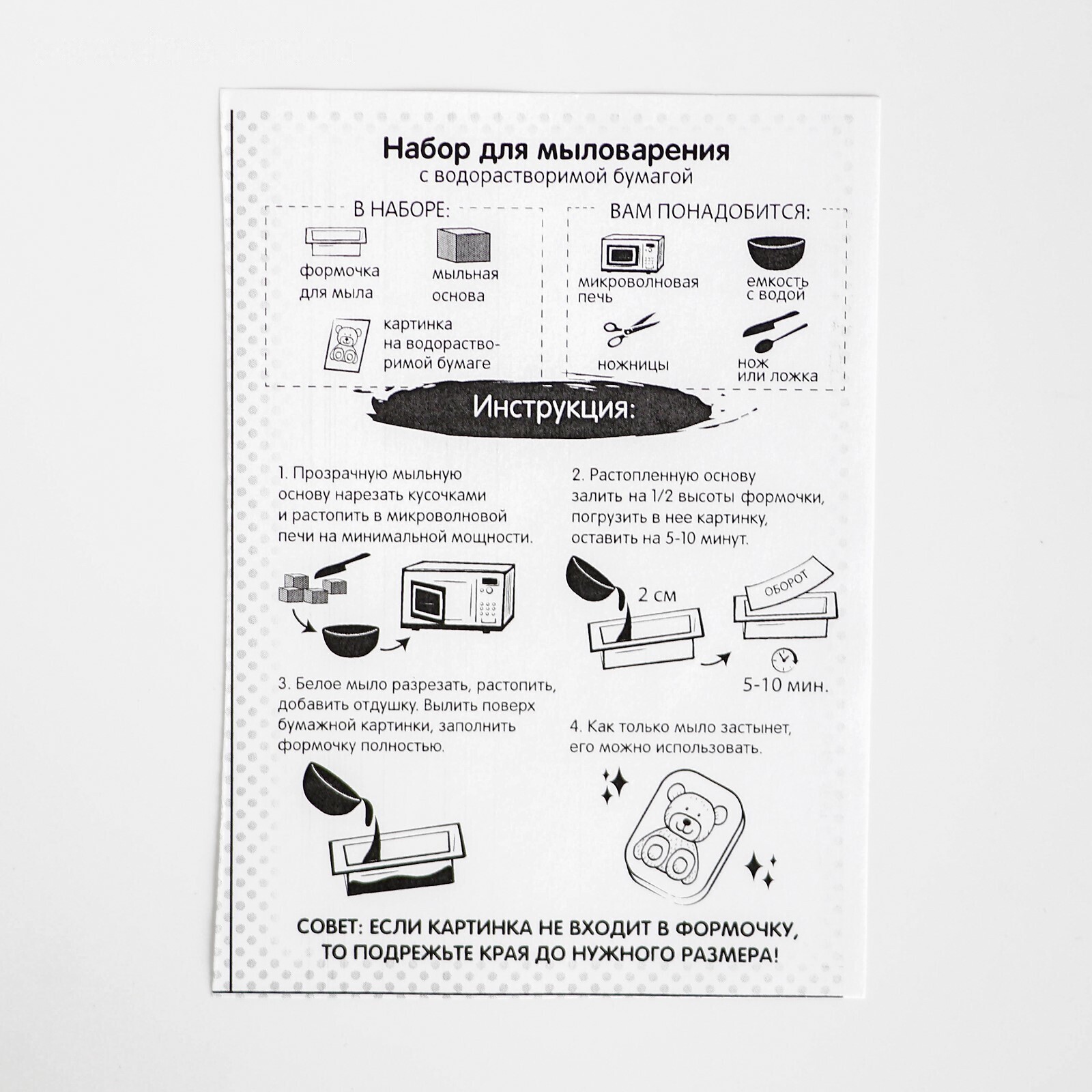 С помощью этого набора вы сможете создать ароматное мыло с яркой картинкой в домашних условиях. Самое главное, что результат своих трудов можно использовать каждый день.