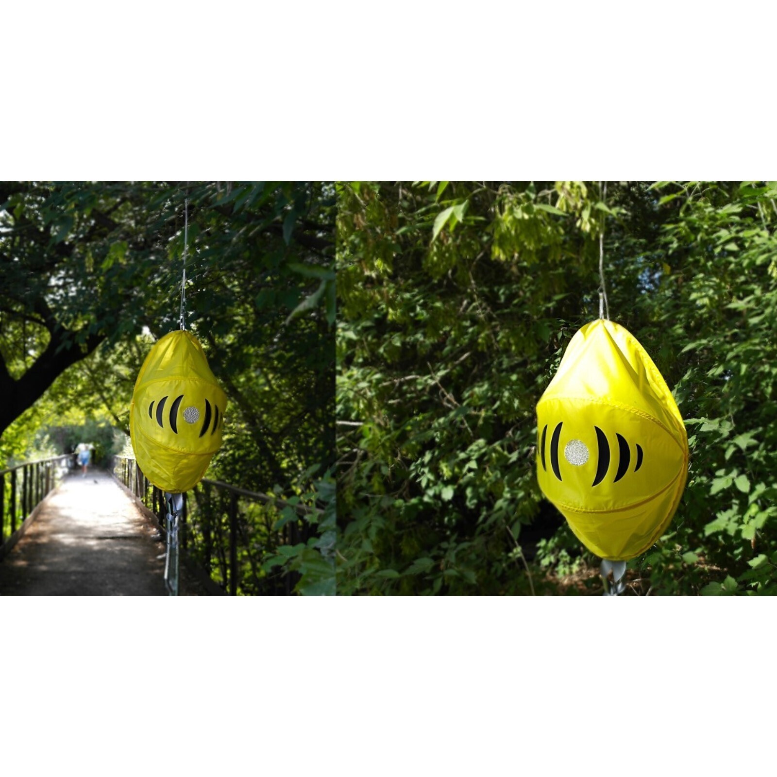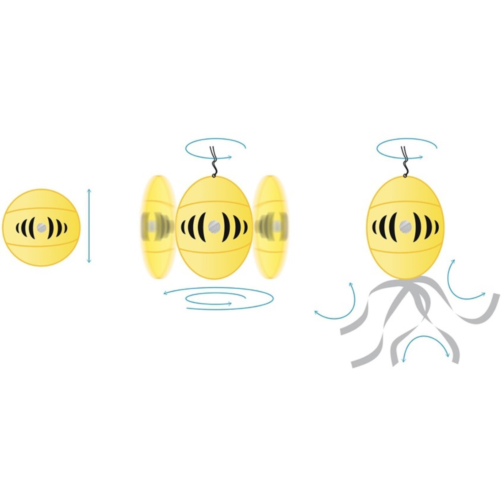 Когда птица подлетает к месту, где находится отпугиватель, она ощущает тройную угрозу. Сначала птица видит силуэт парящего хищника, затем её глаза начинают слепить яркие световые блики от светоотражающих лент и наклейки-глаза, что ещё больше пугает вредителя. Если птица подлетает ближе, она слышит неприятный шум от шуршащих на ветру друг о друга лент.
