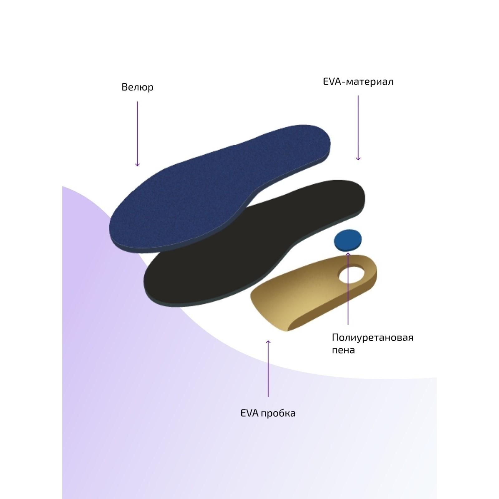 Каркас из плотной EVA-пены (аналог древесной пробки) обладает хорошими амортизирующими свойствами и фиксирует стопу в правильном положении, поддерживая арку и уменьшая напряжение мышц голеностопа.