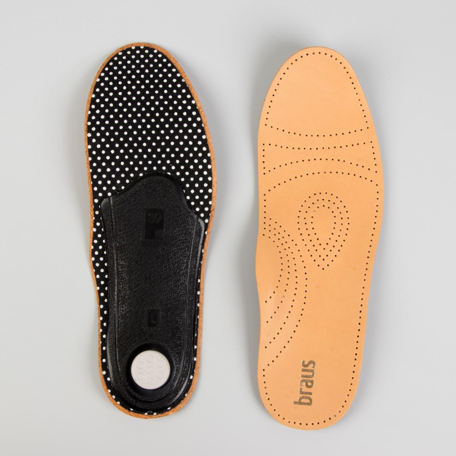 Качество и долговечность изделий BRAUS не уступают мировым аналогам. Они обладают уникальной конструкцией, сделаны на пластиковом каркасе, имеют наполнение из латекса и активированного угля, покрыты натуральной кожей. Стельки обеспечивают отличную воздухопроницаемость, быстрое удаление излишков влаги, правильную поддержку свода стопы и жёсткую фиксацию пятки.