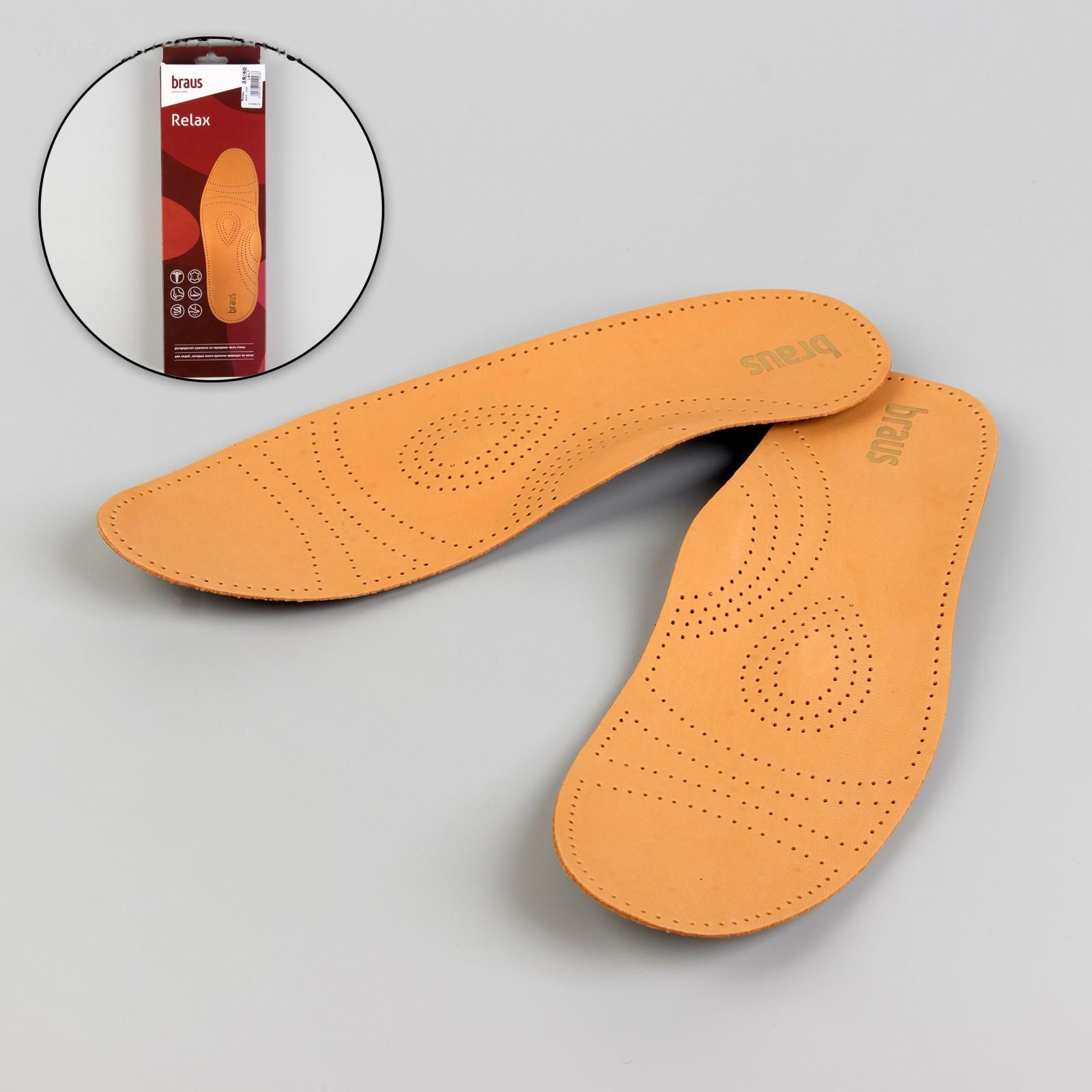 Стельки для обуви амортизирующие, с жёстким супинатором, 39-40р-р, пара, цвет светло-коричневый