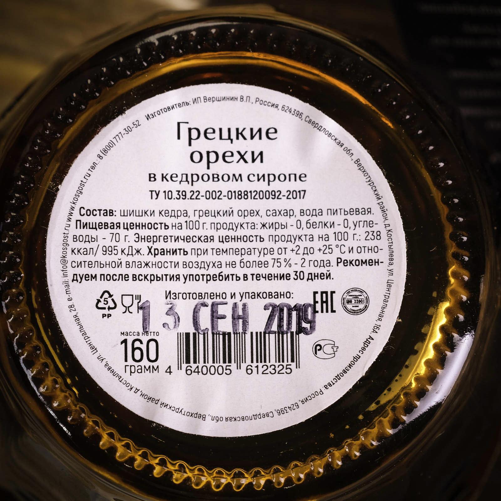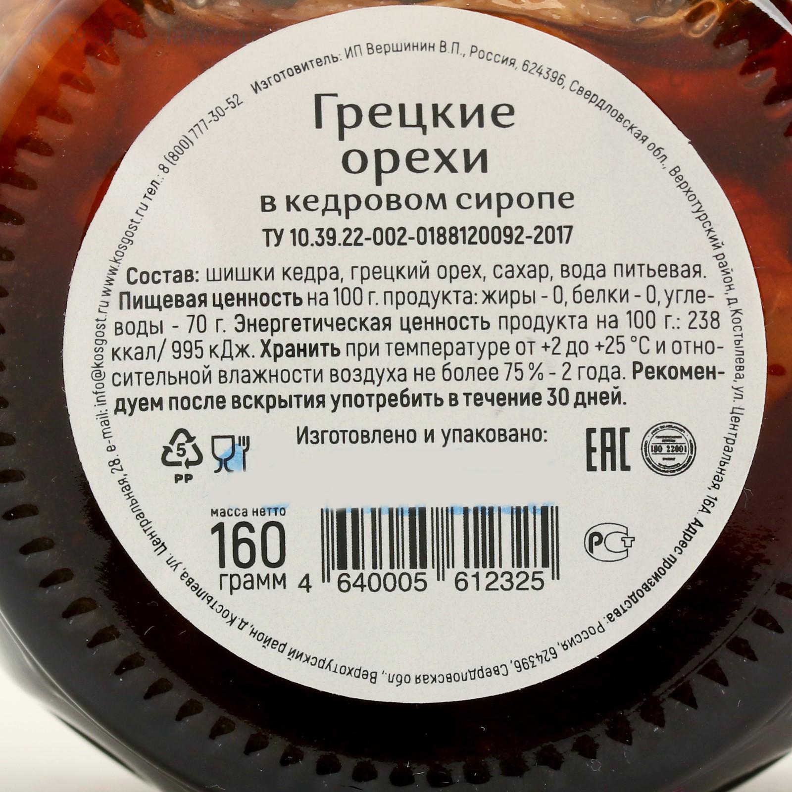 Состав: ядра грецкого ореха, кедровый сироп (шишка кедровая, сахар, вода питьевая).