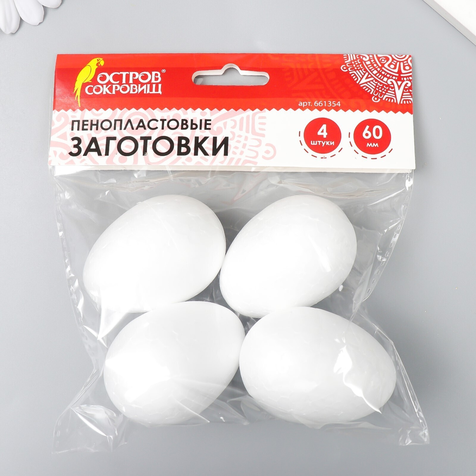 Пенопластовые заготовки для творчества "Эллипсы" набор 4 шт 6 см (яйцо)