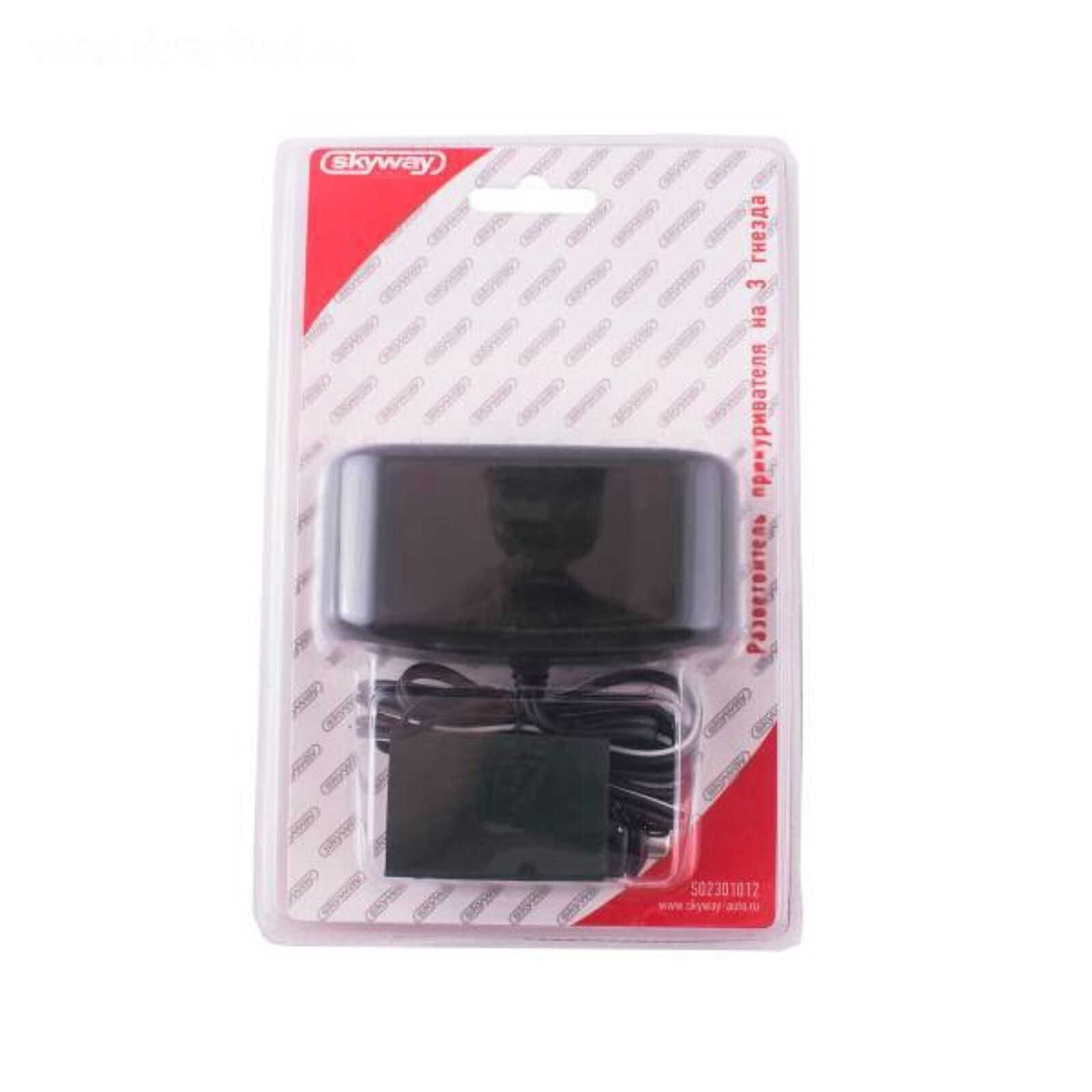 Разветвитель прикуривателя 3 гнезда Skyway черный, предохранитель 10А S02301012, S02301012 BK