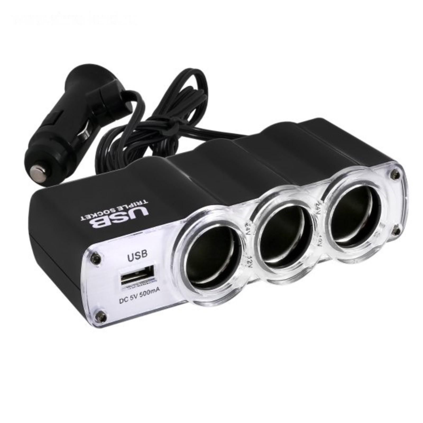 Разветвитель прикуривателя 3 гнезда + USB Skyway черный, предох. 5А, USB 1A S02301007, S02301007