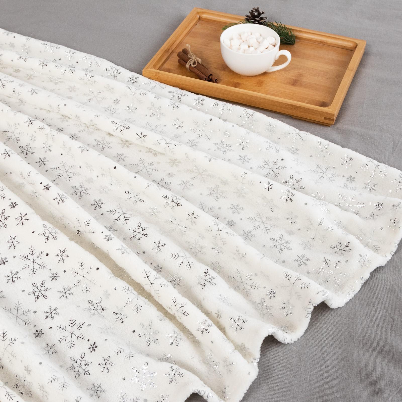 Плед Этель "Серебряные снежинки" 150*200 см,100% п/э, корал-флис 220 гр/м2