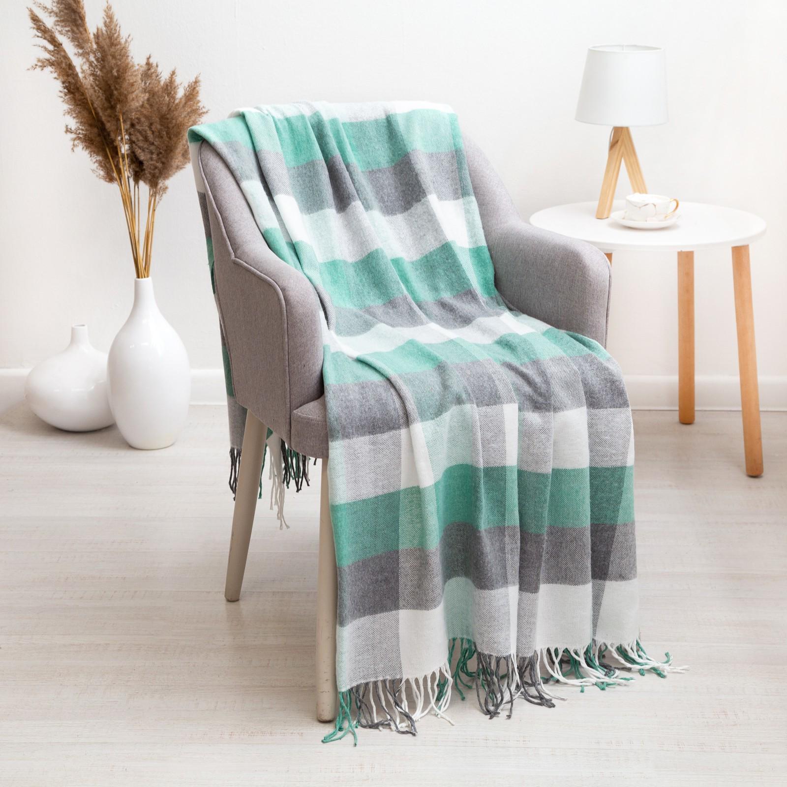 Плед Пикник140х200 см, белый-зелёный-серый, хлопок 20%, пан 40%, полиэстер 40%