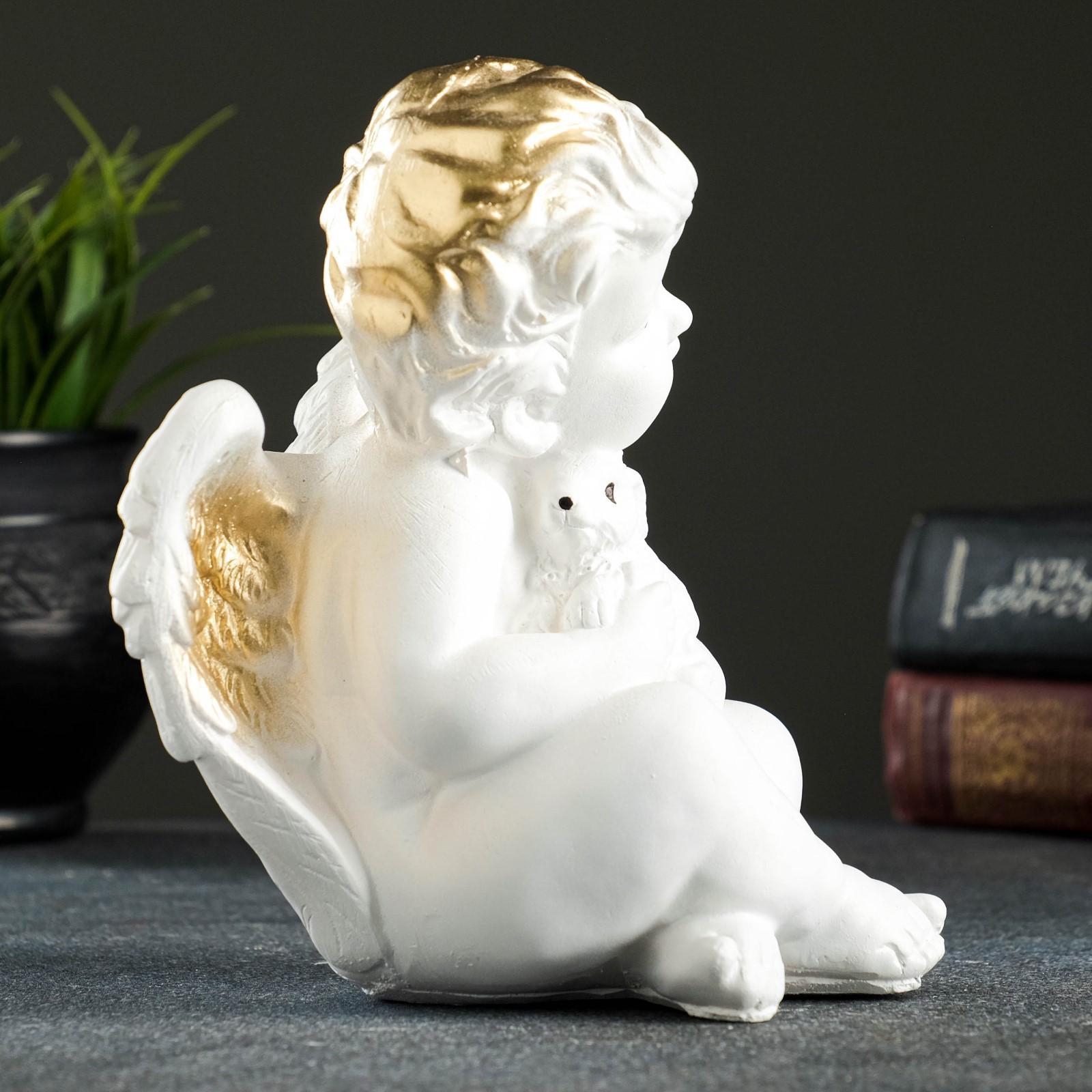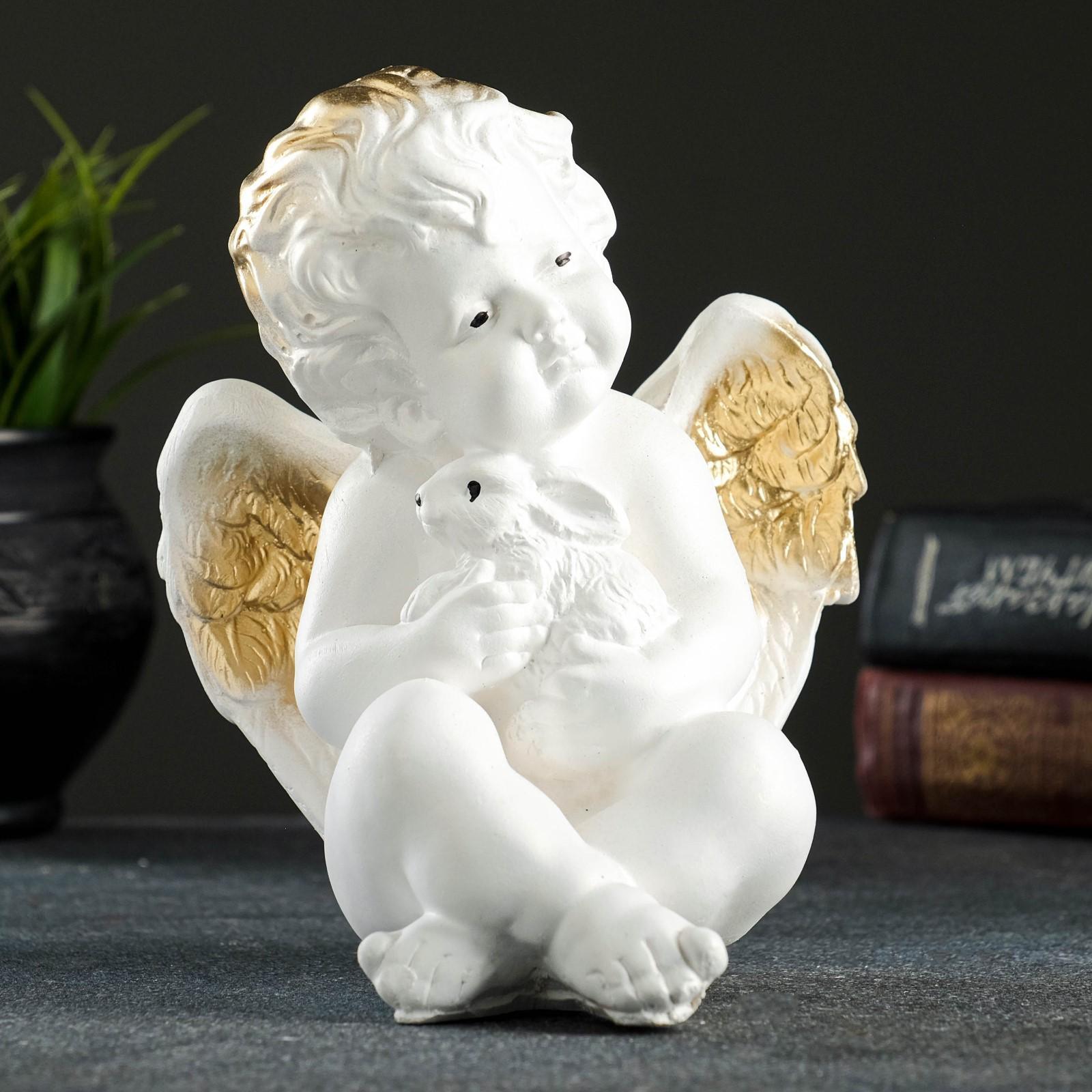 Фигура "Ангел с кроликом" белый 19х16х14см