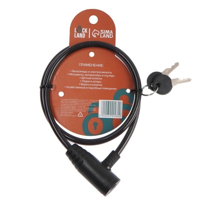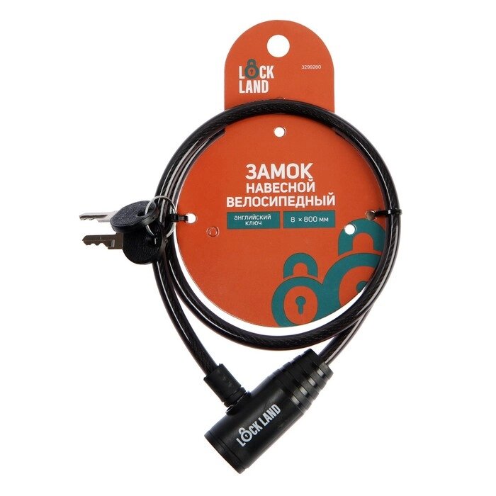 Замок навесной велосипедный LOCKLAND, 8 x 800 мм, английский ключ с пластиковой ручкой