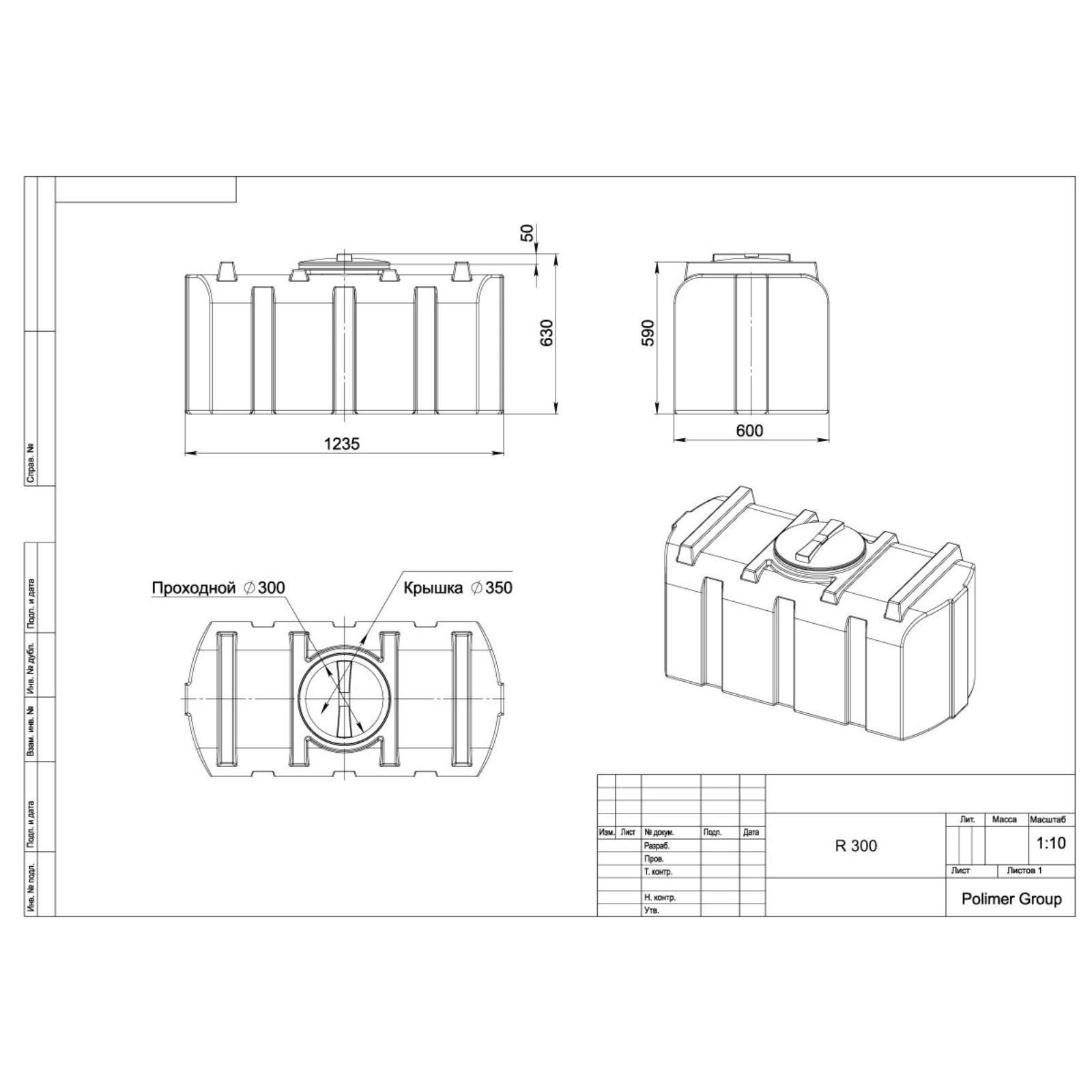 Ёмкость прямоугольная, серия R, 300 л, цвет зелёный
