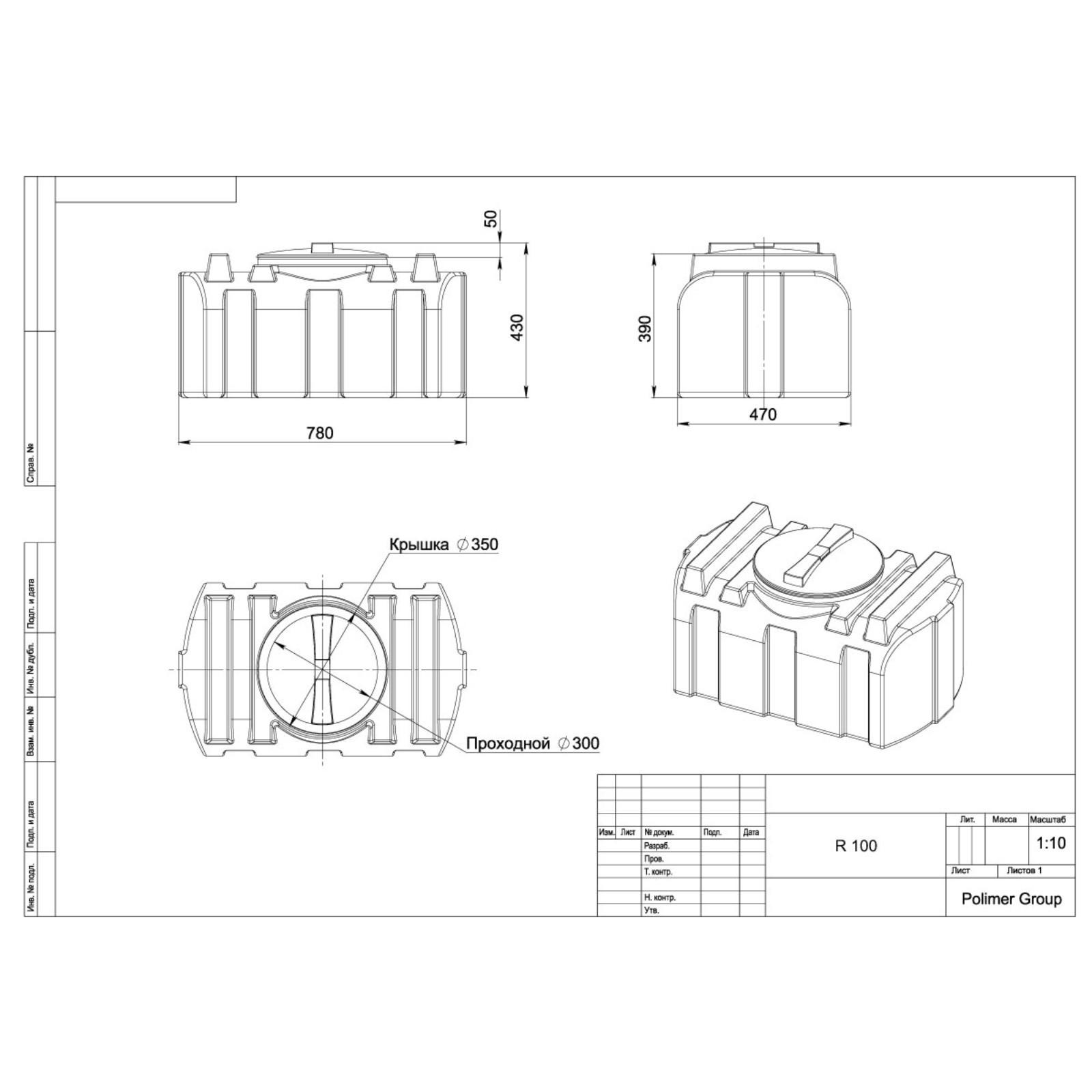 Ёмкость прямоугольная, серия R, 100 л, цвет зелёный