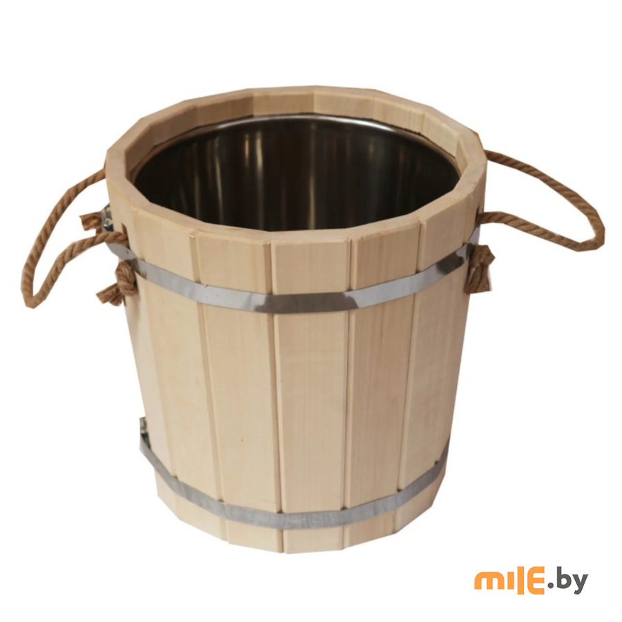 Ручки запарника изготовлены из веревки. Обручи из нержавеющей стали позволяют сохранить форму запарника и предотвратить его деформацию.