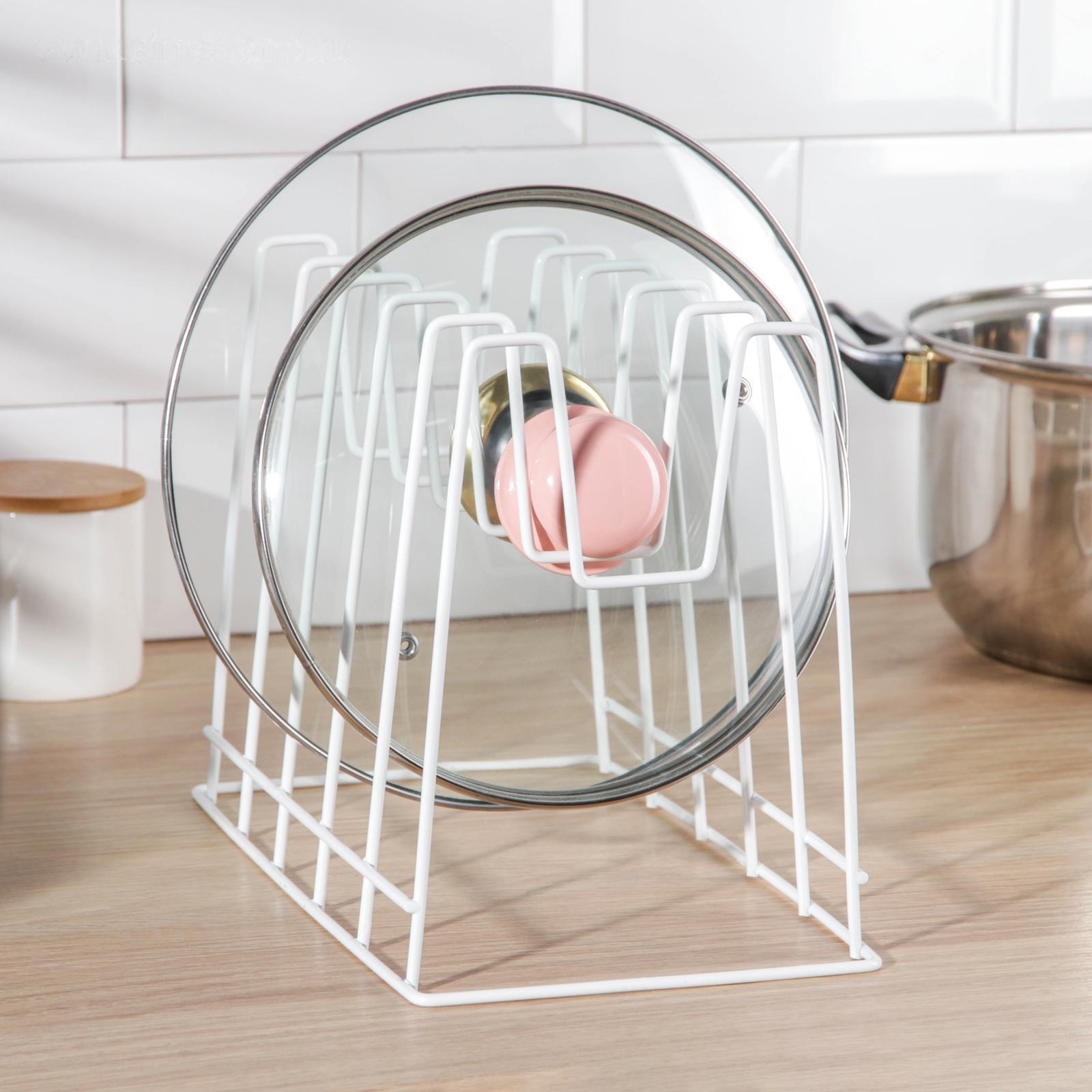 Подставка под крышки настольная, 5 предметов, 29×16×21,5 см, цвет белый