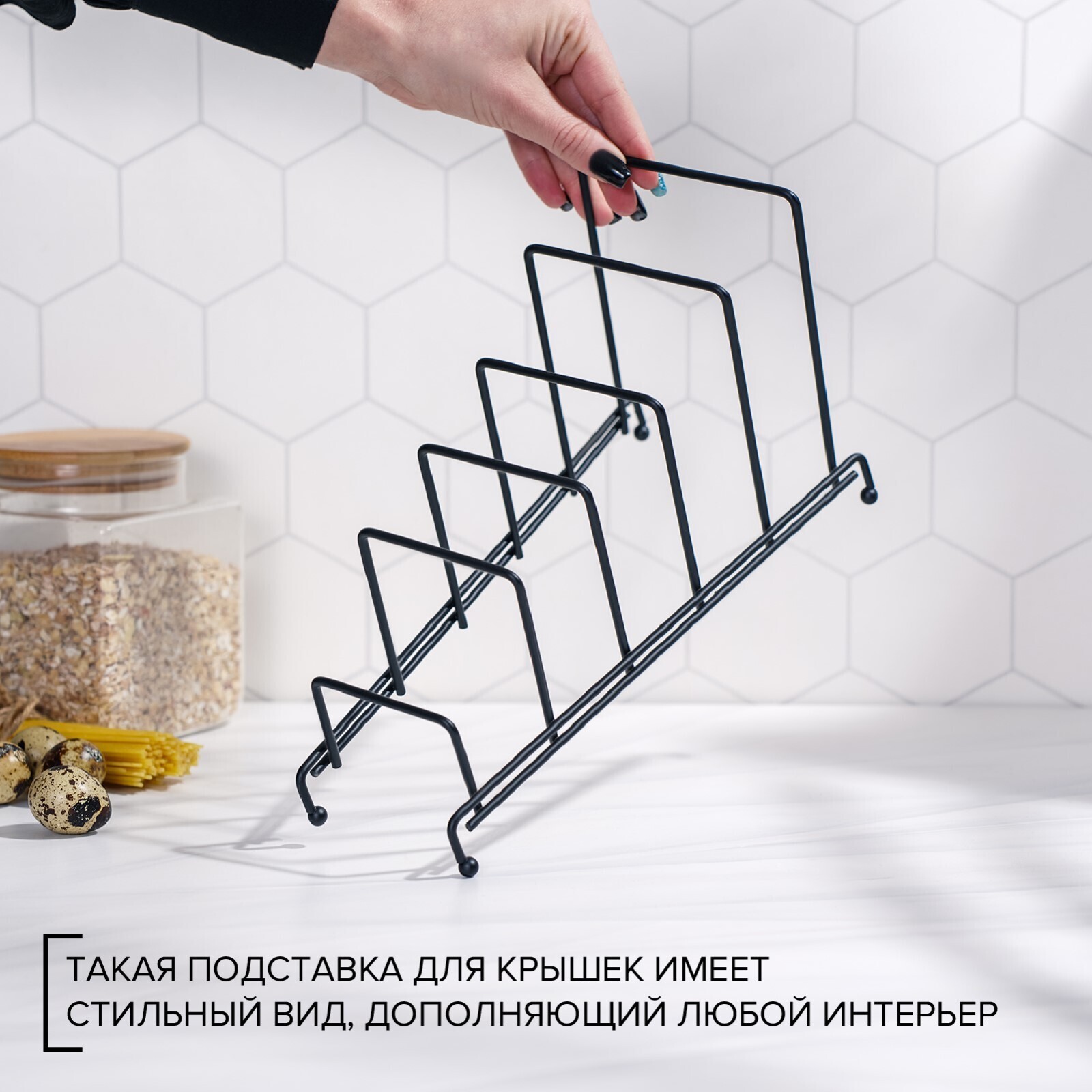 Подставка для крышек на 5 предметов Доляна, 28,5×12,5×16,5 см, цвет чёрный