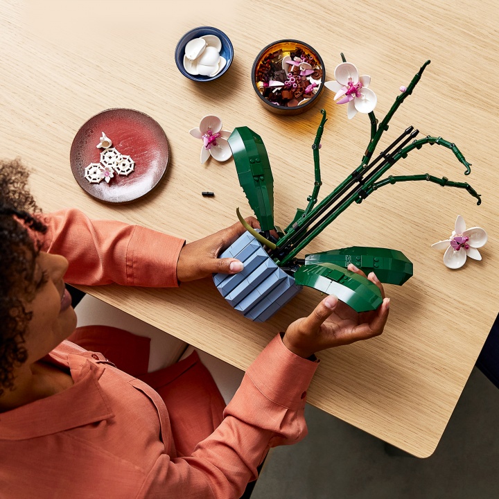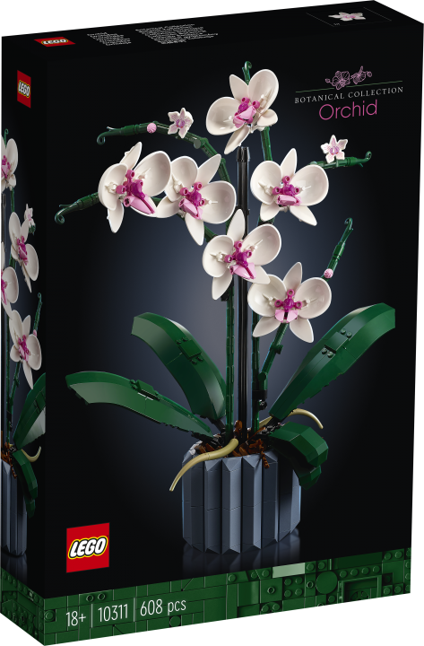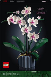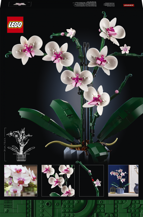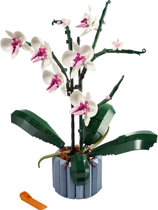 Украсьте свой дом или офис этой прекрасной орхидеей LEGO. Не торопитесь, во всех деталях собирая белые с розовым цветы и синюю рифлёную вазу. Эта стильная модель, созданная по образу настоящей орхидеи, отображает шесть больших цветков и два только что раскрывшихся бутона. Наслаждайтесь увлекательной сборкой, а потом не торопясь украсьте настраиваемые стебли, чтобы создать идеальную композицию для вашего помещения.