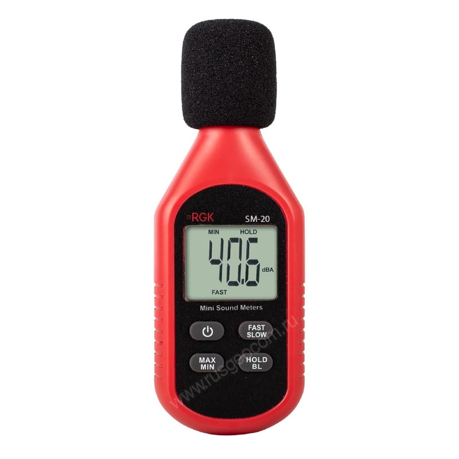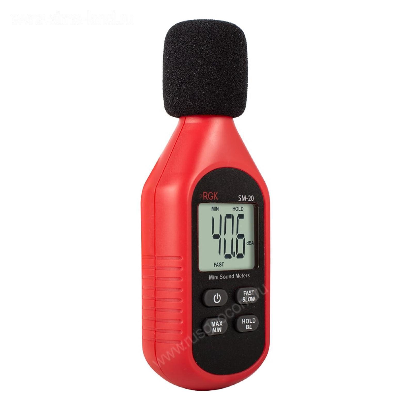 Шумомер RGK SM-20 776530, диапазон - 30–130 дБ, разрешение - 0,1 дБ, точность - ±1,5 дБ