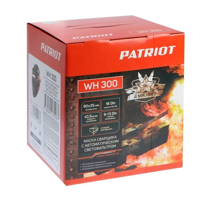 Маска сварщика Patriot WH 300, хамелеон, 110х90 мм, DIN 9-13, откидное стекло