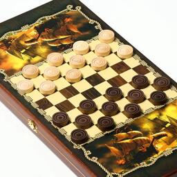 Нарды "Баталия", деревянная доска 50 х 50, с полем для игры в шашки, полиграфия