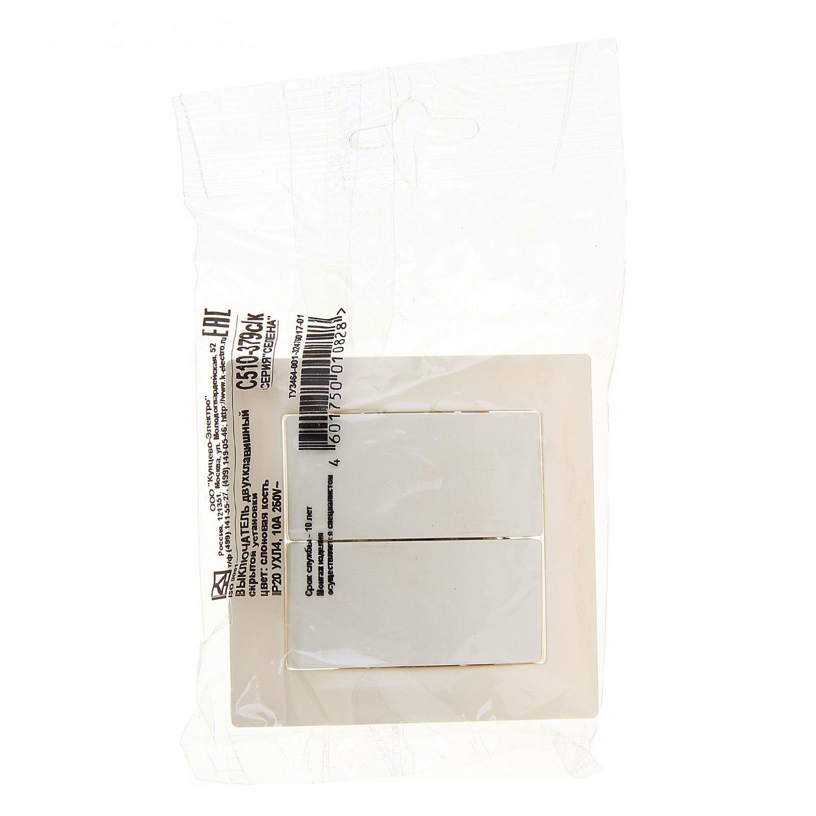 Выключатель "Кунцево" Селена 8143, 10 А, 250 В, 2 клавиши, скрытый, цвет слоновая кость