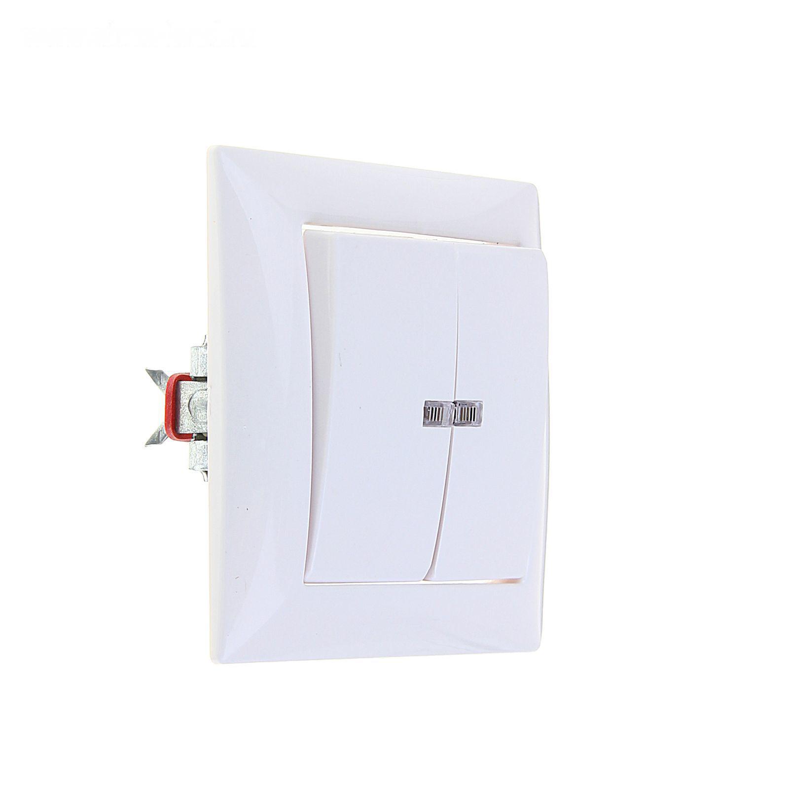 Выключатель "Кунцево" Селена 8104, 10 А, 2 клавиши, скрытый, с индикатором, белый