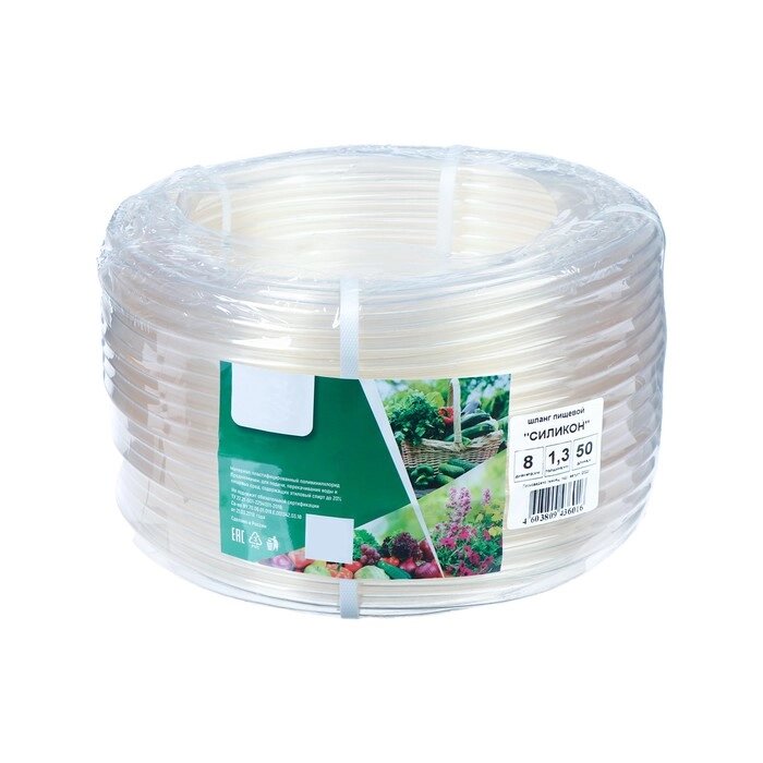 Шланг ПВХ, d = 8 мм, L = 50 м, пищевой, прозрачный