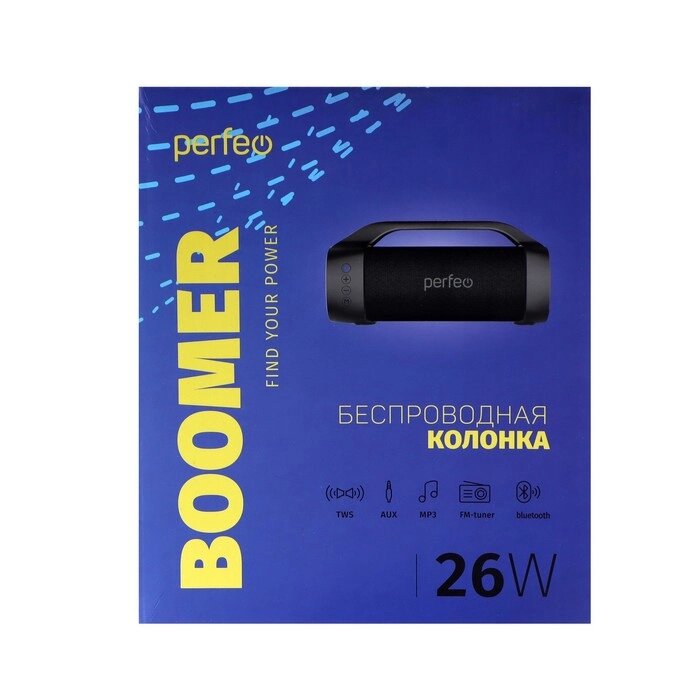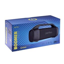 Портативная колонка Perfeo BOOMER, FM, MP3, microSD, USB, AUX, 26 Вт, 3600 мАч, черная