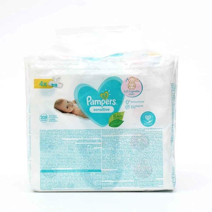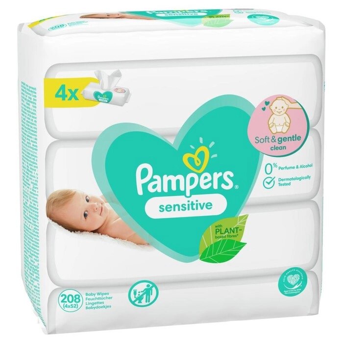 Детские влажные салфетки Pampers Sensitive, 4 уп. по 52 шт.