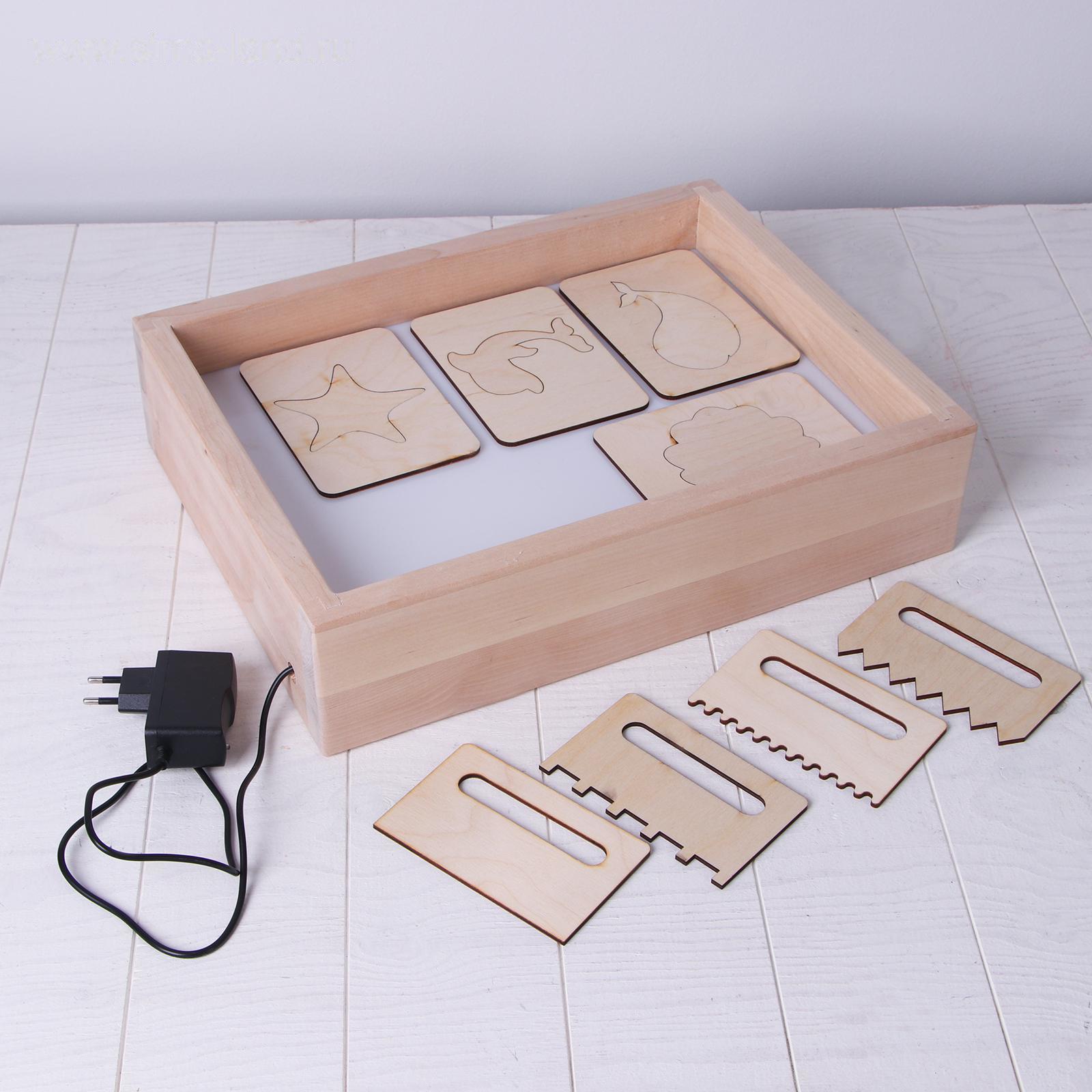 Планшет для рисования песком с белой подсветкой, 30 × 40 см + гребень и трафарет