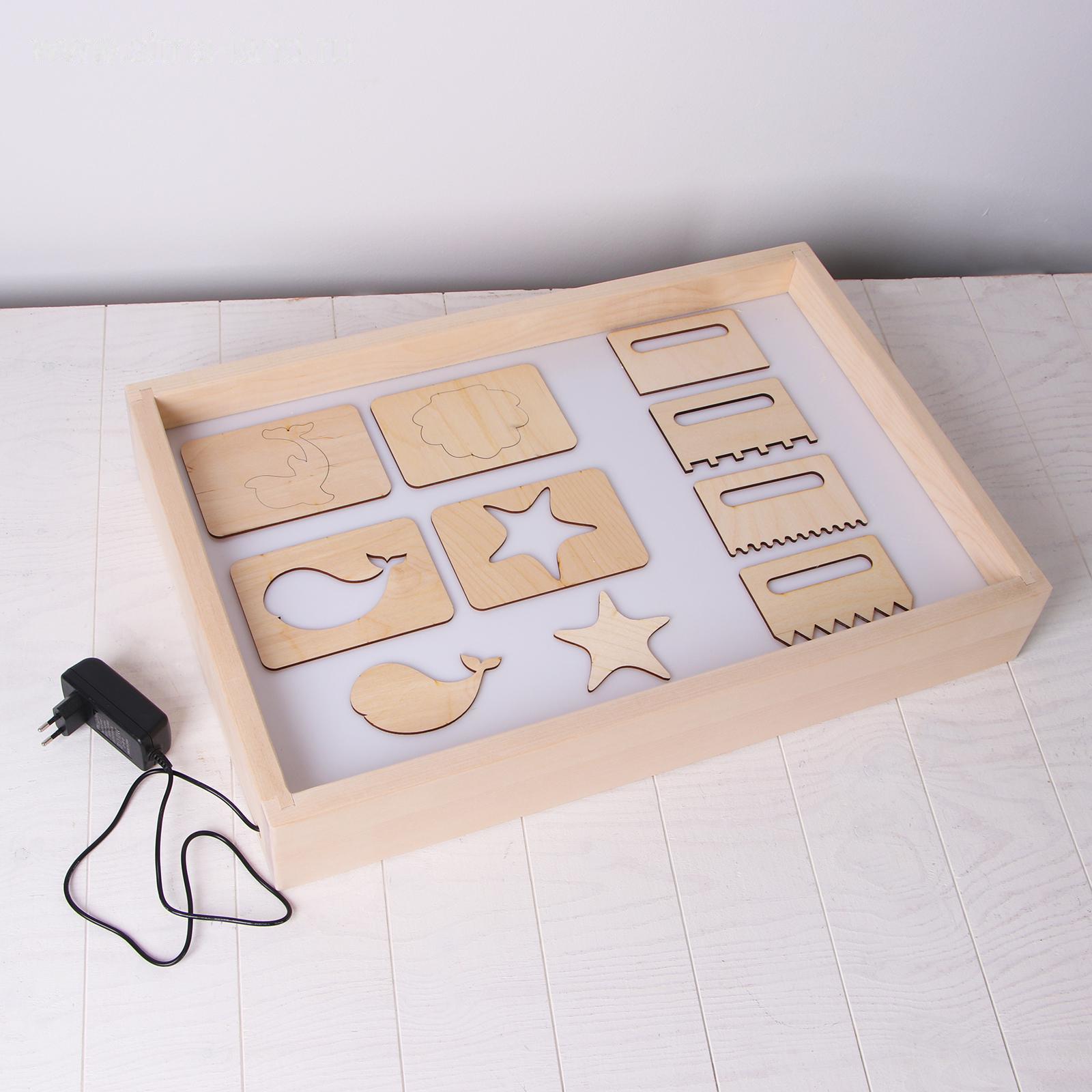 Планшет для рисования песком 40*60 см с белой подсветкой + гребень и трафарет