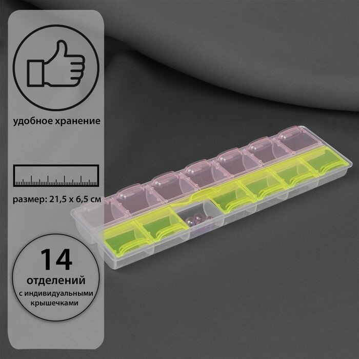 Органайзер для рукоделия, 14 отделений, 21,5 6,5 2,3 см, цвет МИКС