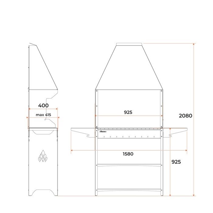 Мангал "Professional Standart Zont PSZ3000" с крышей, 158,2х41,2х207,9см