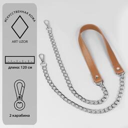 Ручка для сумки, с цепочками и карабинами, 120 1,8 см, цвет бежевый