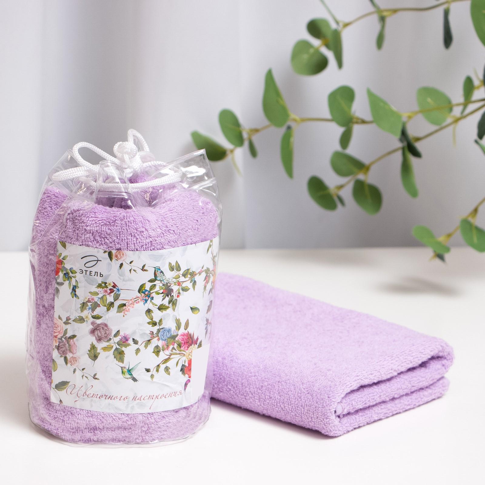 Полотенце подарочное Этель "Цветочного настроения" цв.сиреневый, 50х90см, 100% хл, 340 г/м2