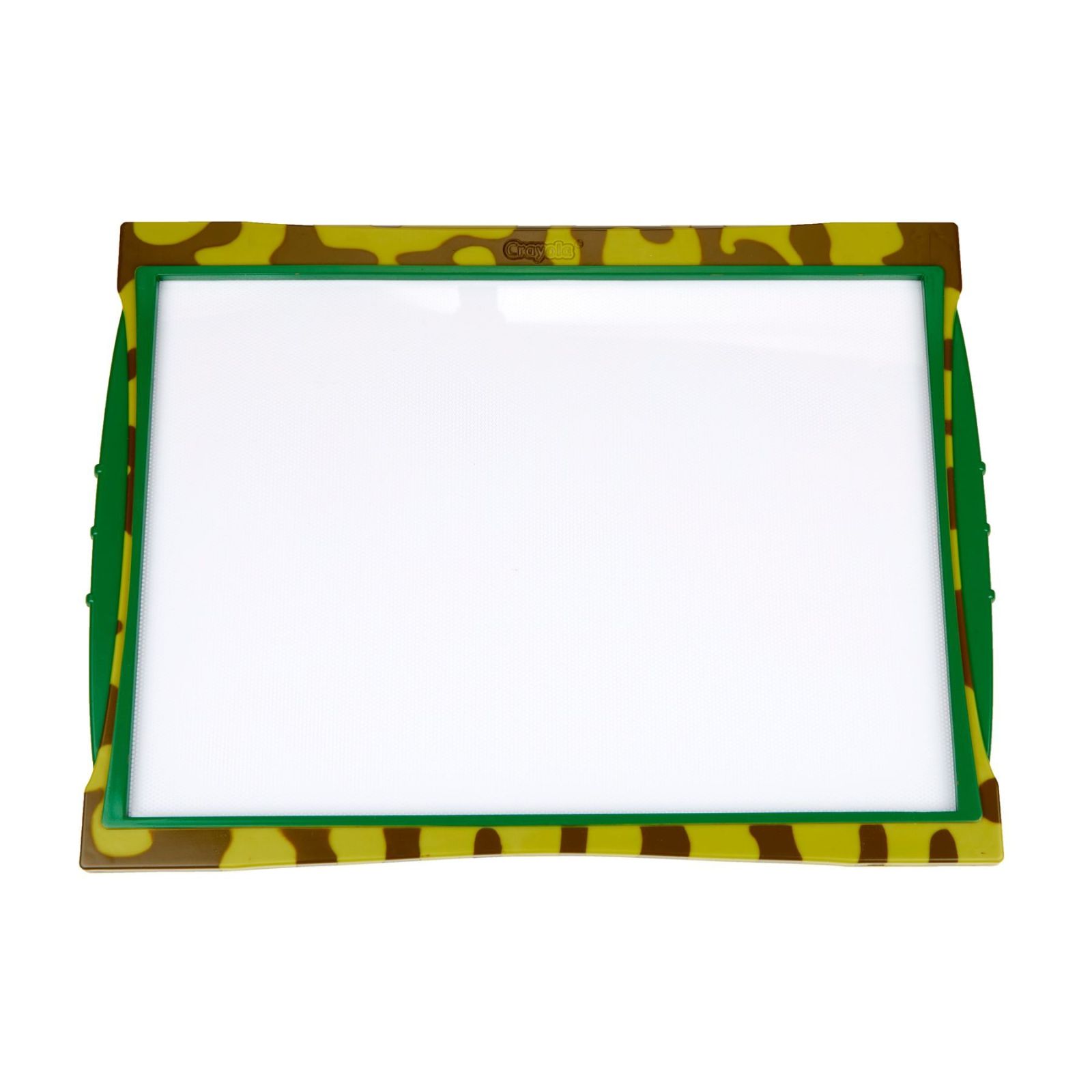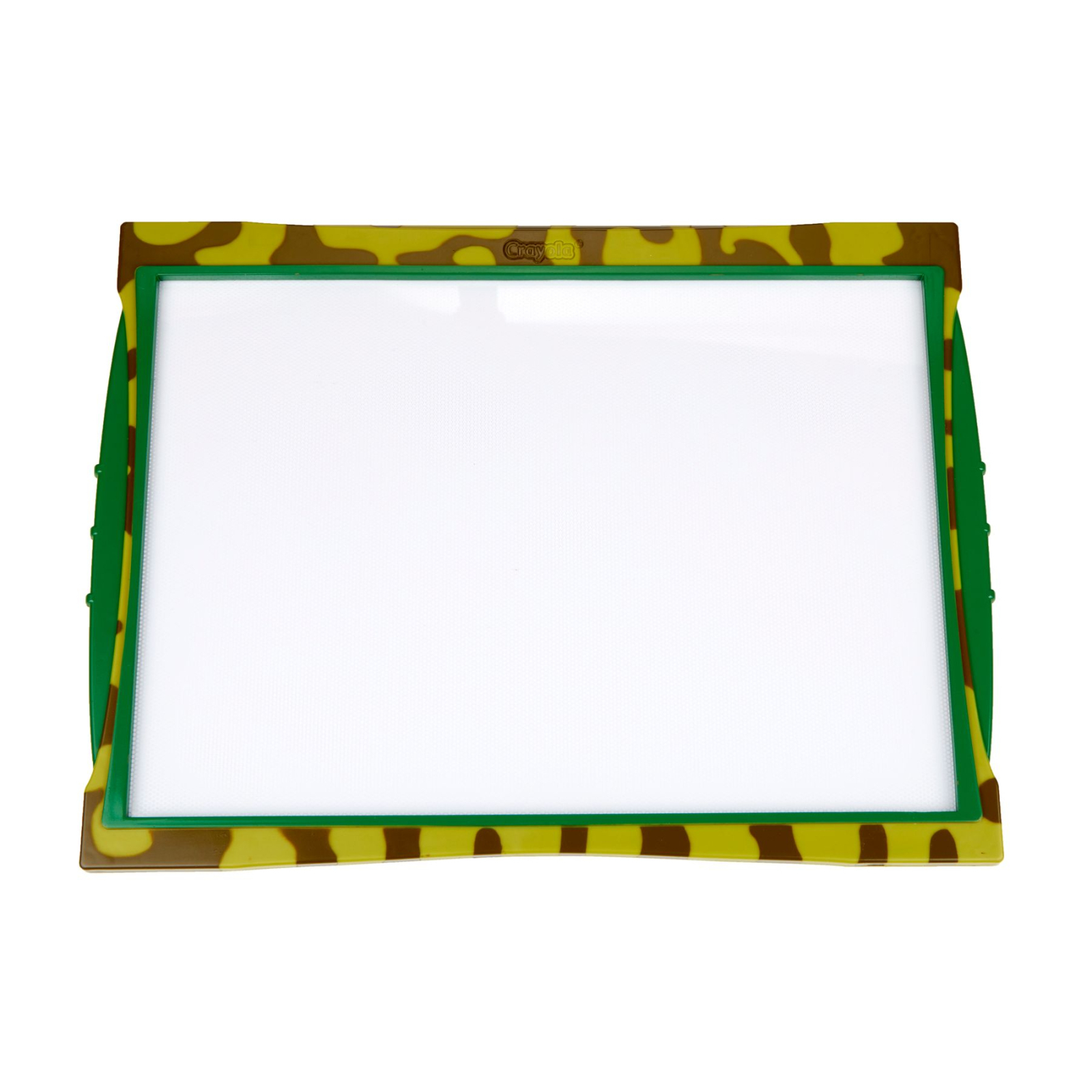 Набір для творчості Crayola ігрова панель з підсвічуванням. За допомогою цього планшету діти можуть створювати цілі картини-епізоди з життя динозаврів. Але для цього не потрібно бути художником-палеонтологом – все набагато легше! За допомогою світлового табло та трафаретних зображень місцевості та різних динозаврів можна вельми просто створити справжній шедевр у стилі парку Юрського періоду. Дино-стайл панелі та відповідна палітра кольорових олівців. В наборі планшет з неслизькою рамкою з LED підсвічуванням, 3 трафарета місцевості, 7 трафаретів динозаврів (14 видів), 10 чистих аркушів паперу, 1 графітовий олівець, 12 кольорових олівців. Потребує батарейок – 3*АА (не входять до комплекту).
