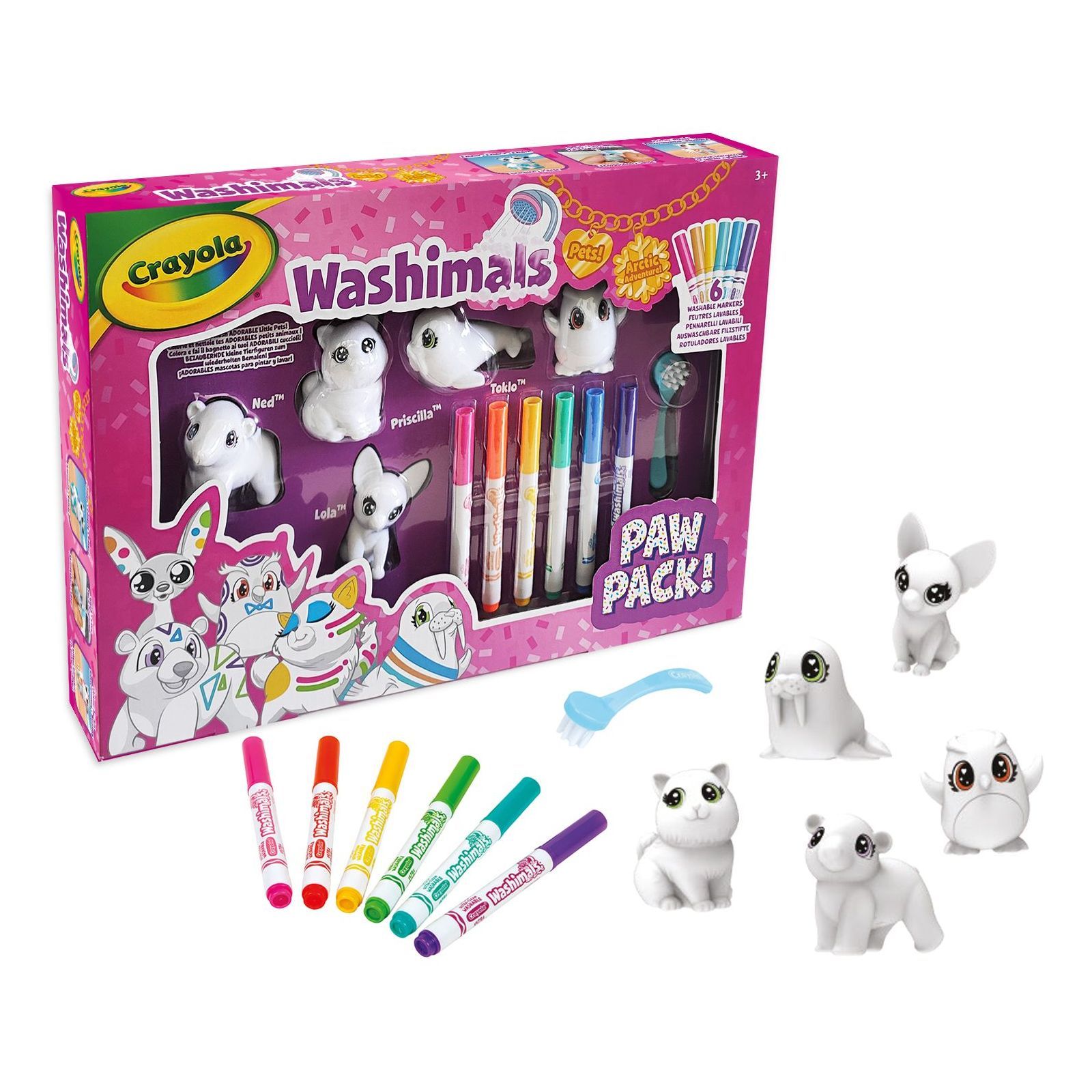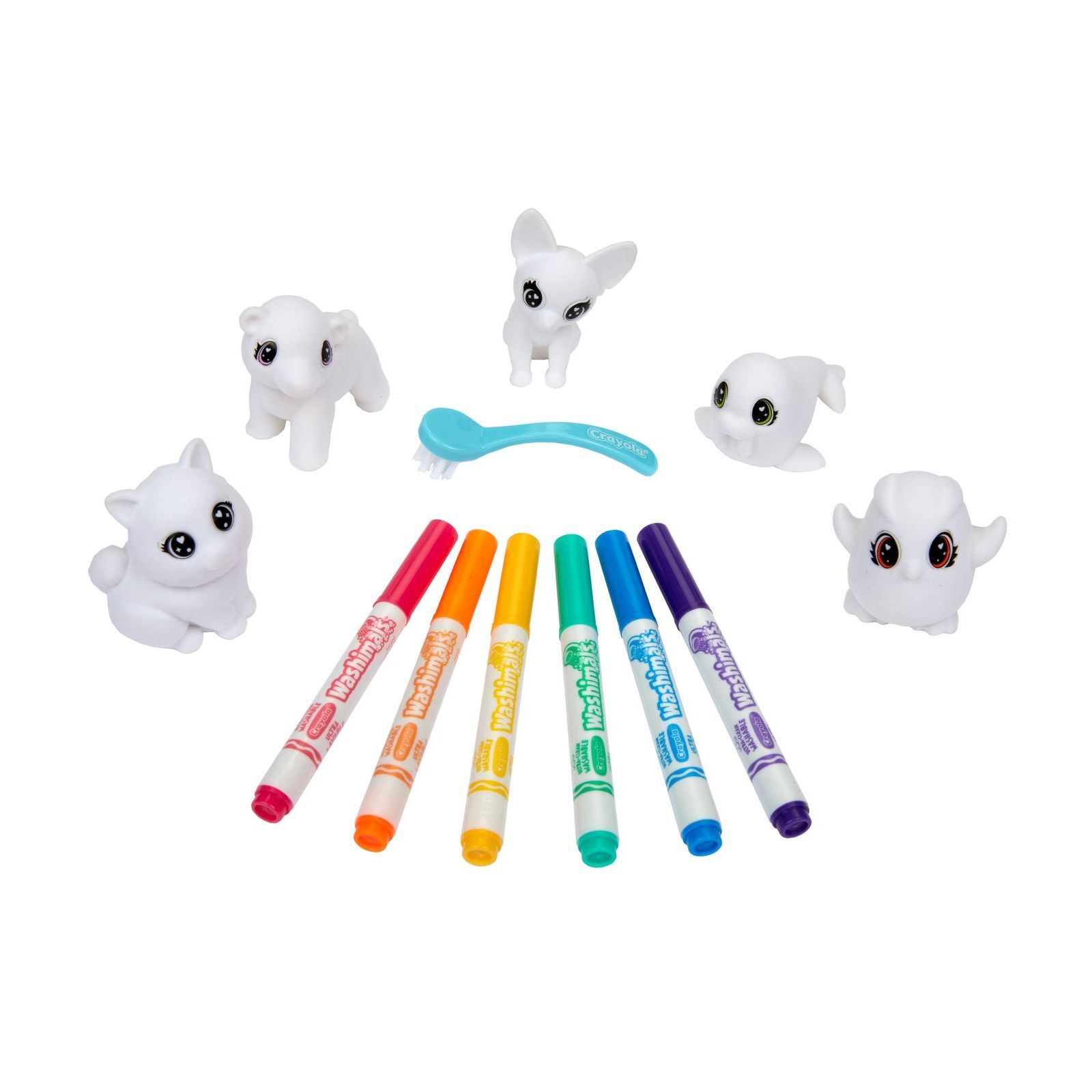 Розмалюйте, змийте і знову розмалюйте арктичних тваринок від Crayola Washimals ! Розфарбуйте 5 звіряток за допомогою супермиючих фломастерів. Коли прийде час рестайлінгу, просто потріть їх щіткою та помийте у звичайній воді. 6 фломастерів, 5 фігурок улюбленців та щіточка у комплекті.
