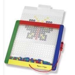 Магнітна мозаїка Melissa & Doug складається із спеціальної дошки, магнітної палички та магнітних елементів. У набір також входить шість заготовок-картинок, із зразками на одному боці та чистими на обороті. Можна створювати вже заготовлені картинки, або ж свої.