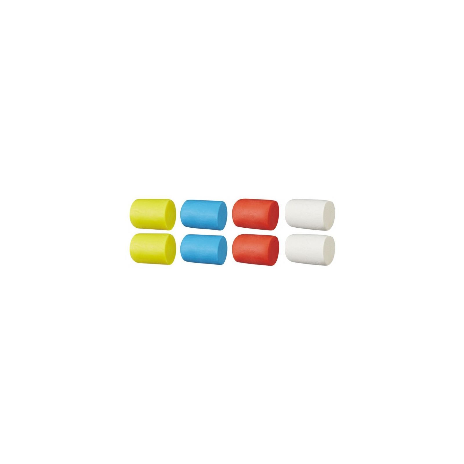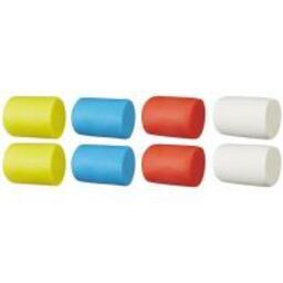 Супербаночка Play-Doh містить масу для ліплення червоного, синього, жовтого й білого кольорів. Маса для ліплення всередині відерця упакована у два пакетики, щоб зберегти інші кольори свіжими, поки вони не знадобляться.