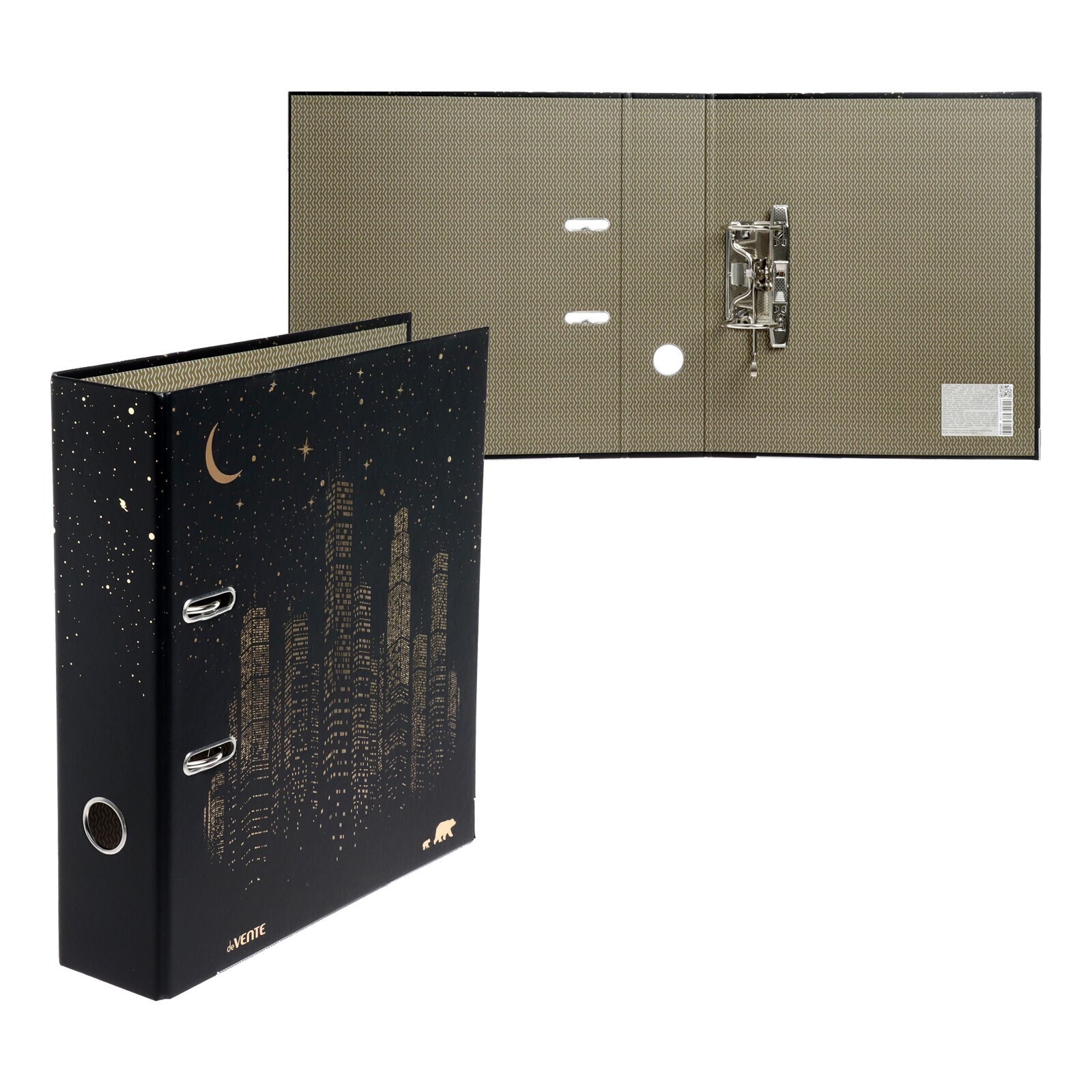 Папка с арочным механизмом deVENTE. My Gold. Night City A4 75 мм, матовая ламинация, тиснение фольгой, картонная разобранная, металлическая окантовка, цветная запечатка форзаца, в пластиковом пакете