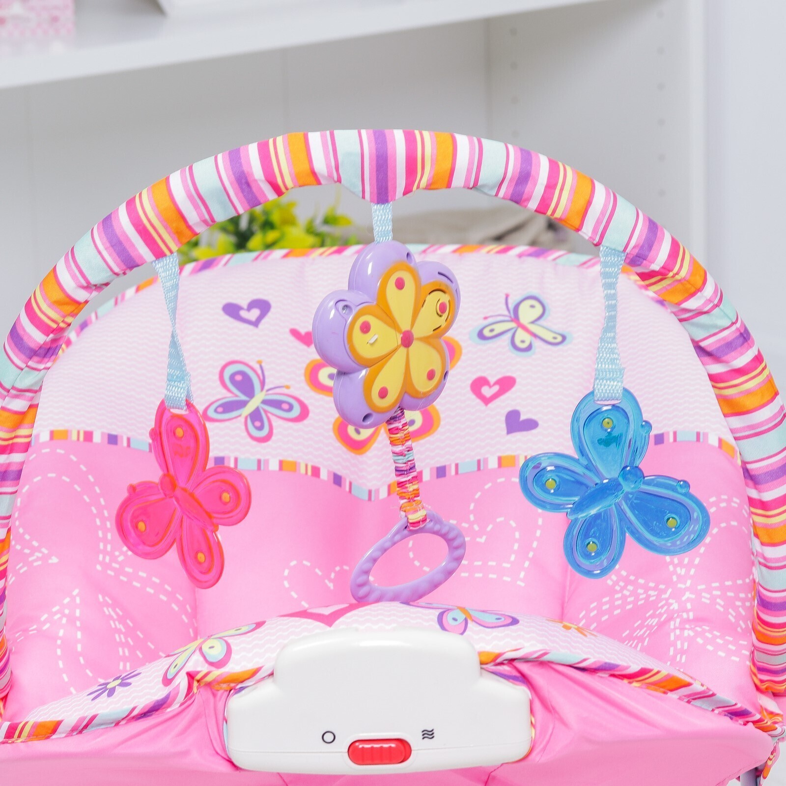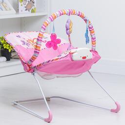 УЦЕНКА Шезлонг «Бабочки», с погремушками, цвет розовый