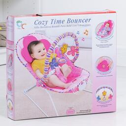 Колыбель оснащена ремнями безопасности, полозьями для качания, а так же игрушками.