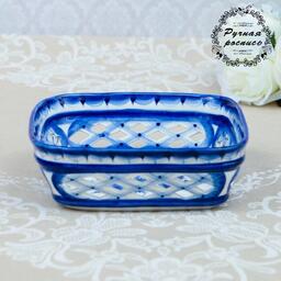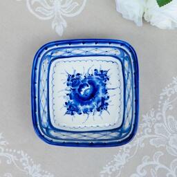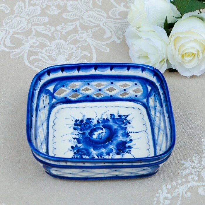 Сухарница квадратная, гжель, фарфор, 6х17 см