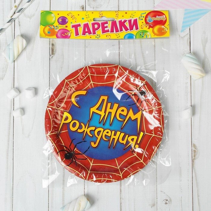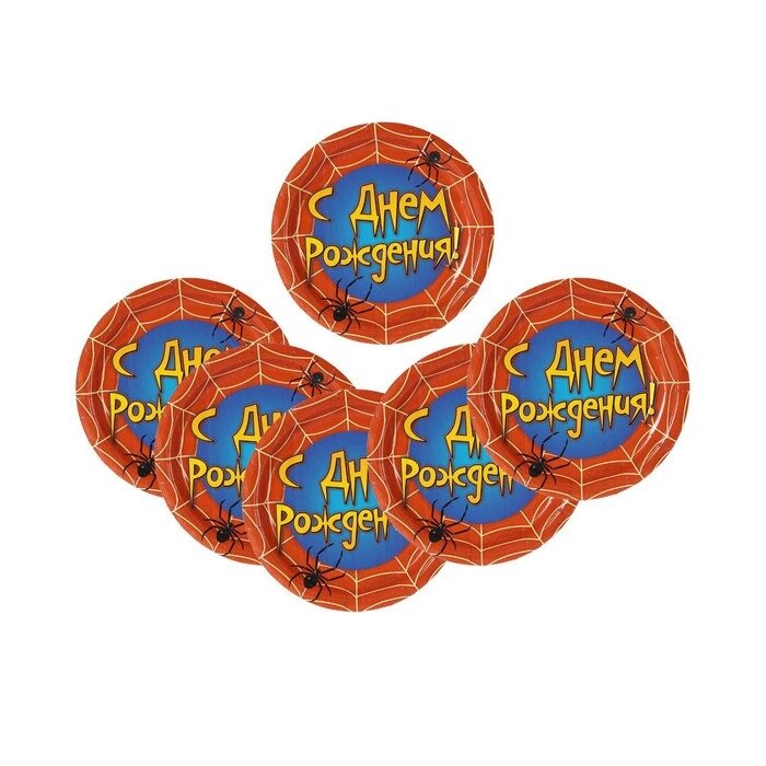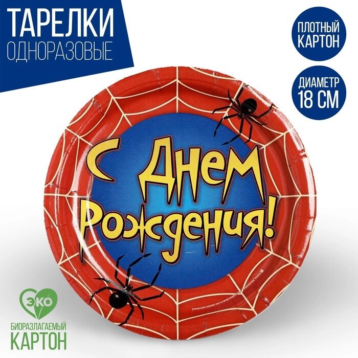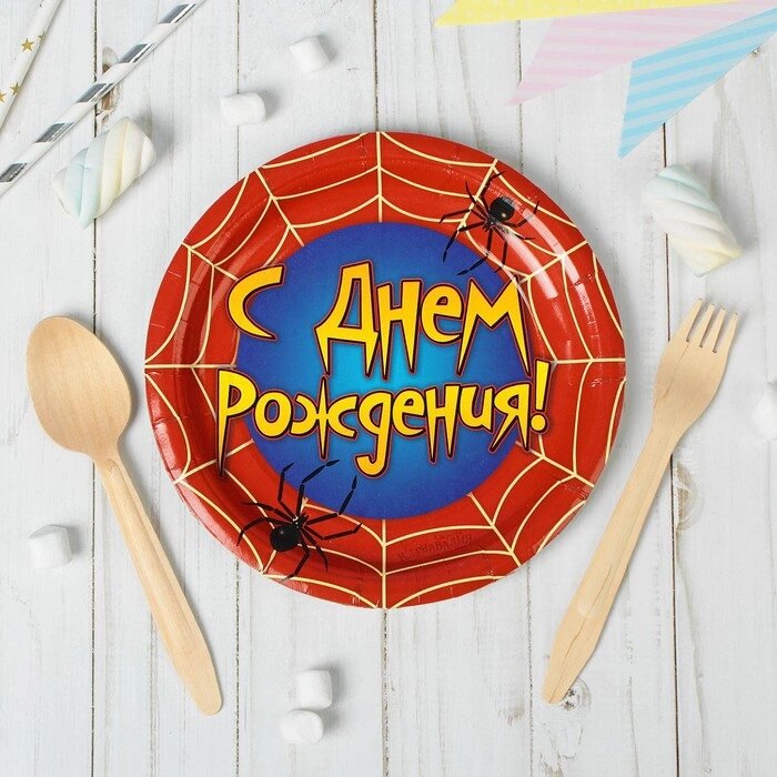 Тарелка бумажная "С днём рождения", паутина, 18 см, набор 6 шт.