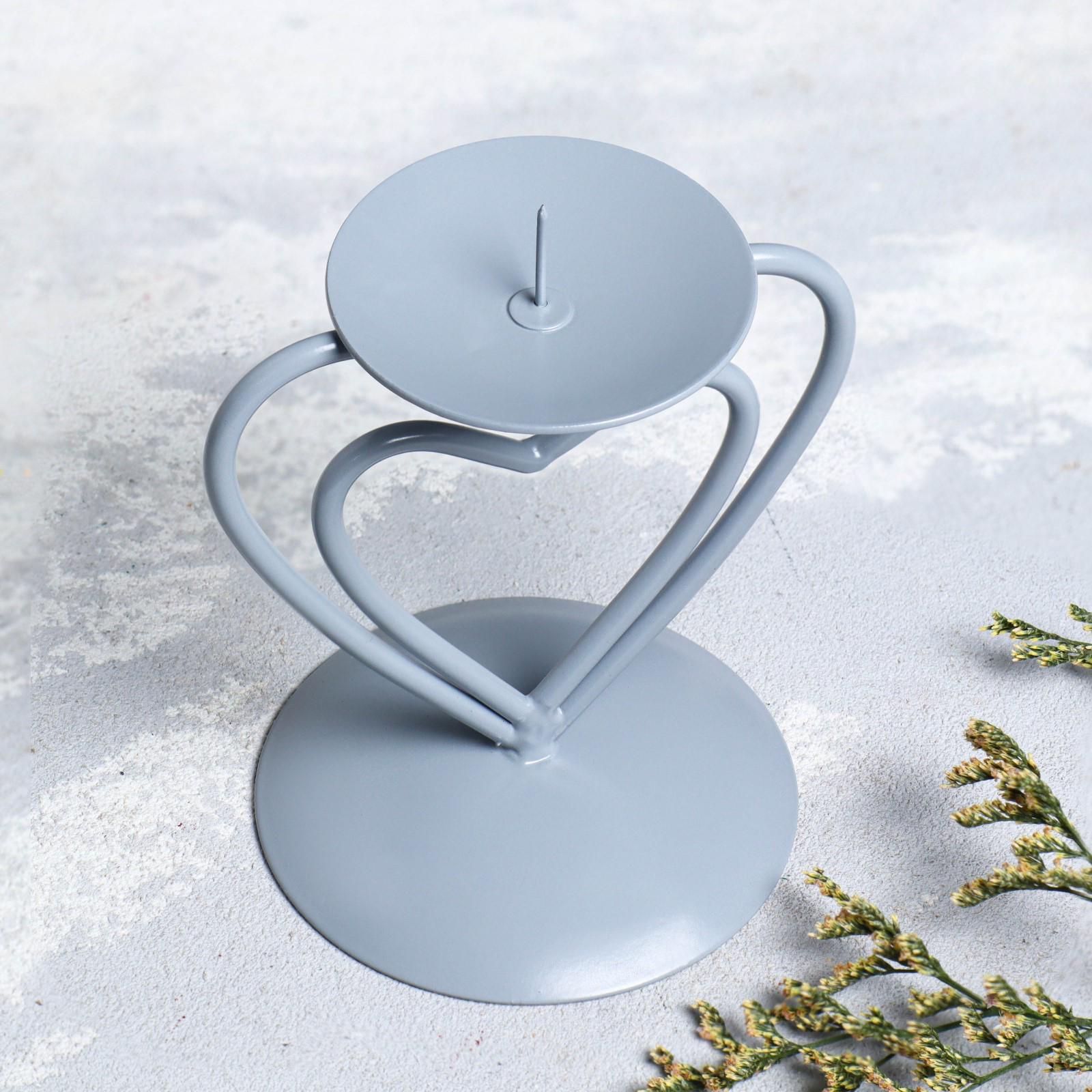 Подсвечник металл на 1 свечу "Гламур", 10,2х9 см, серый