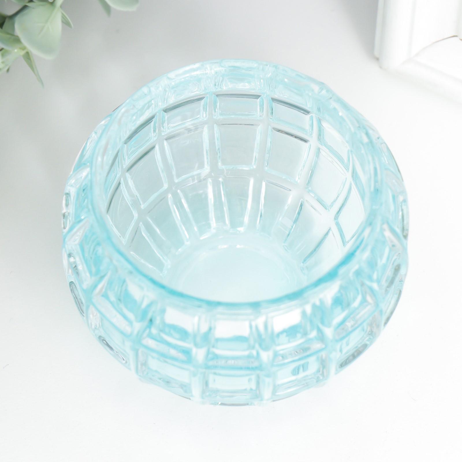 Подсвечник стекло "Бочонок" d-4,5 см голубой 7,5х7,5х6 см